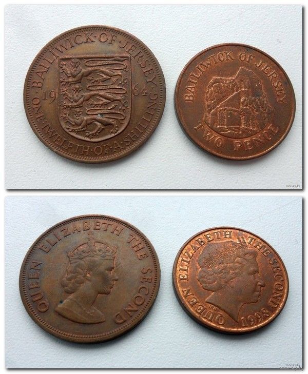 ДЖЕРСИ - 2 пенса 1998 года и 1/12 шиллинга 1964 года - из коллекции (цена за две монеты)