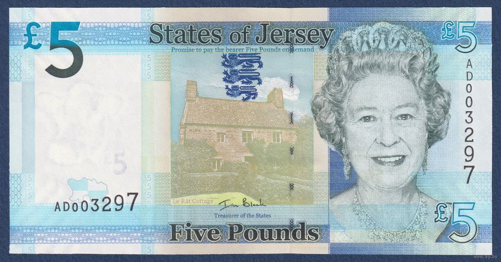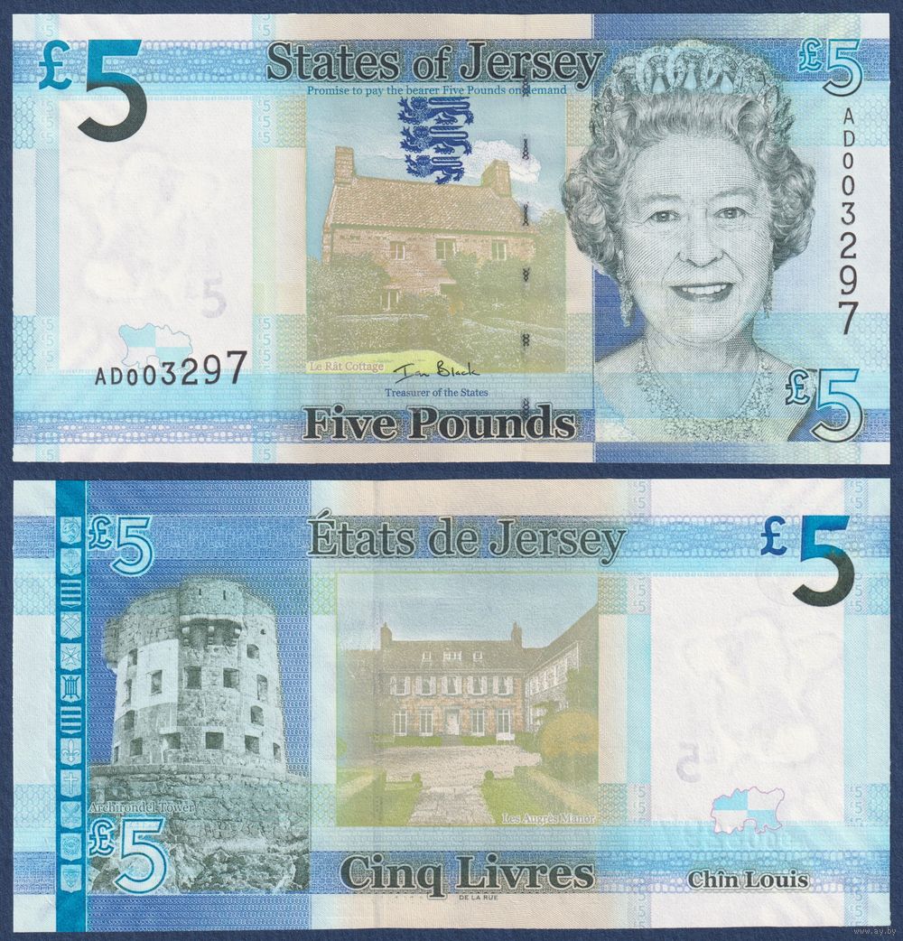 Джерси, 5 фунтов 2010 г., P-33a (AD, королева Елизавета II, коттедж Le Rat), UNC