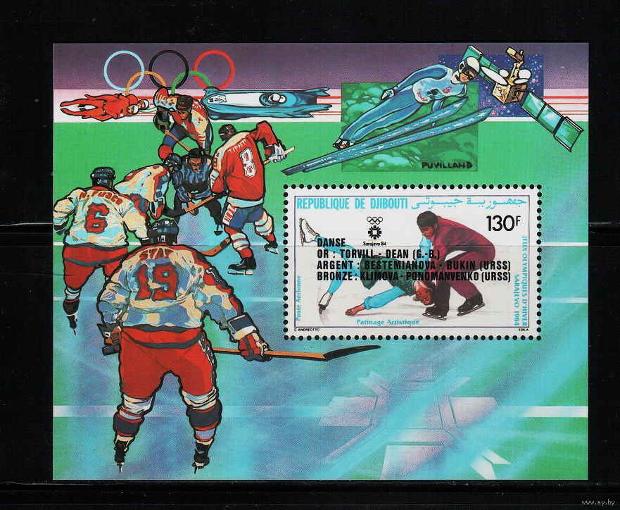 Джибути-1984 Спорт, Зимняя ОИ-1984 , Хоккей, Космос, Надп MNH