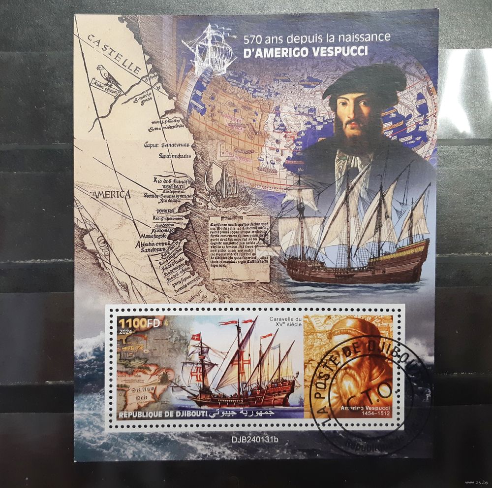 Джибути. 2024 год. Флот. История мореплавания. Америго Веспуччи. Блок (933)
