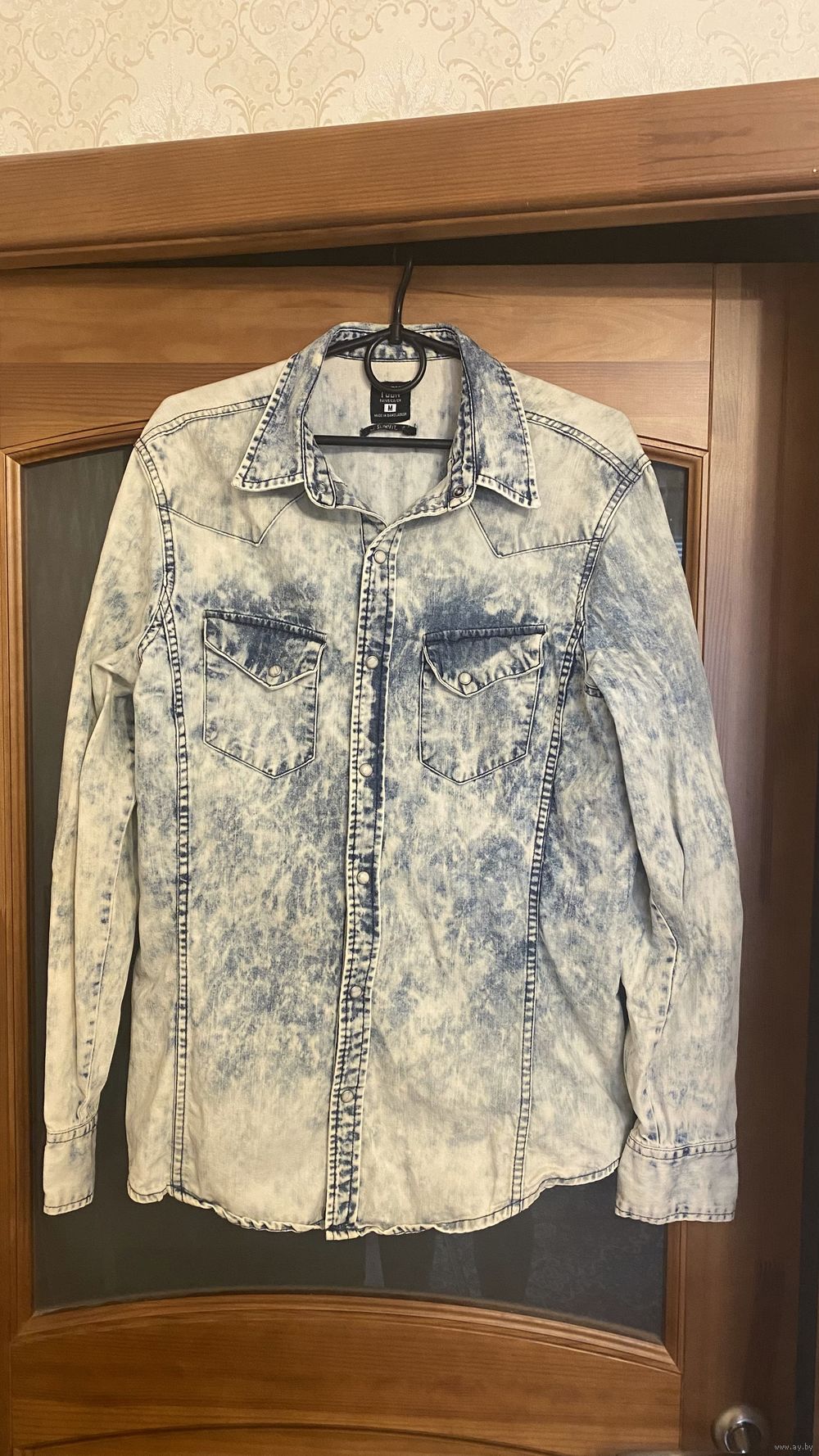 Джинсовая рубашка, размер M, состояние хорошее. Замеры по плечам 48, полуобхват талии 50, длинна рукава 66см, длинна изделия 77см.