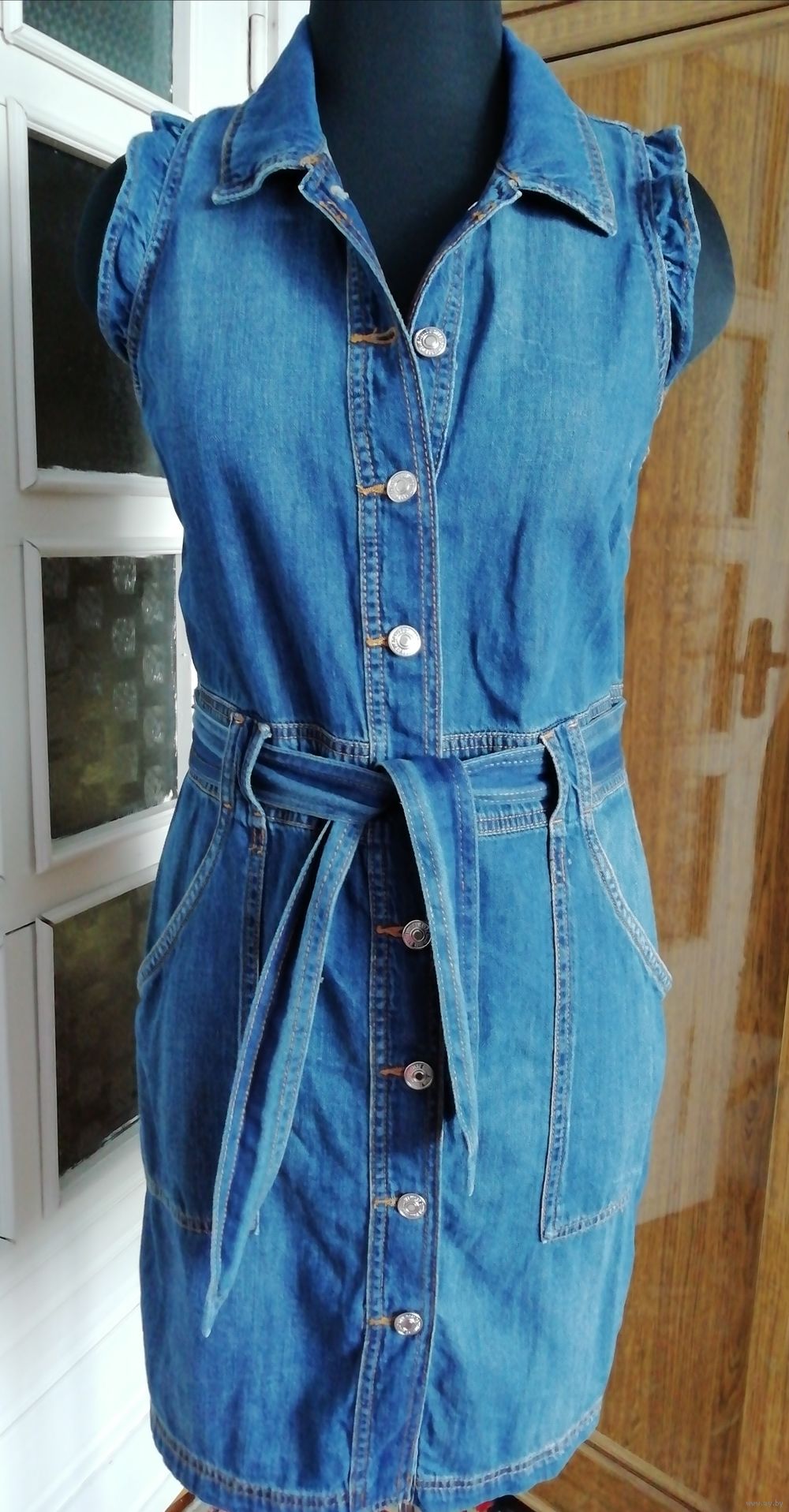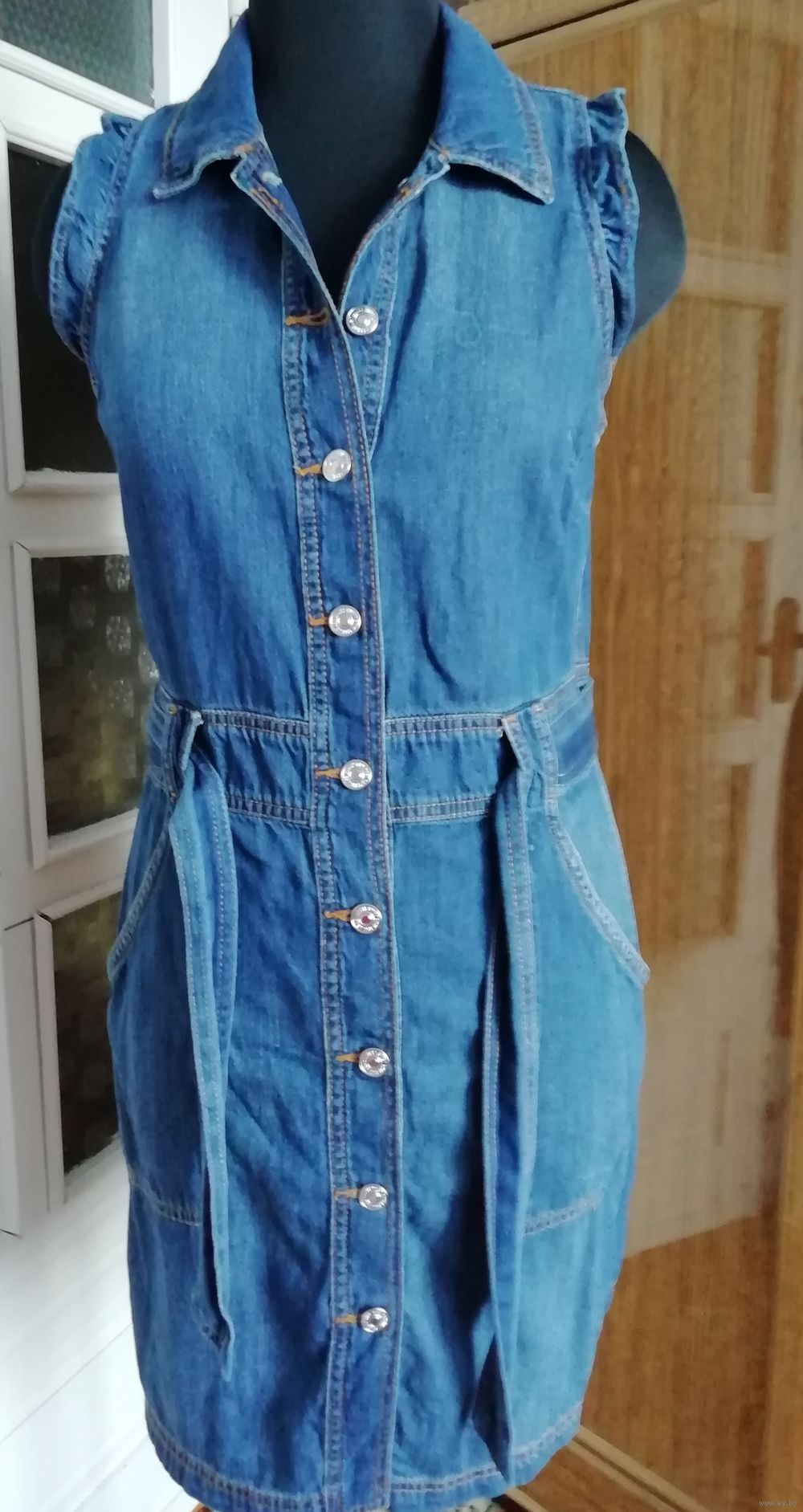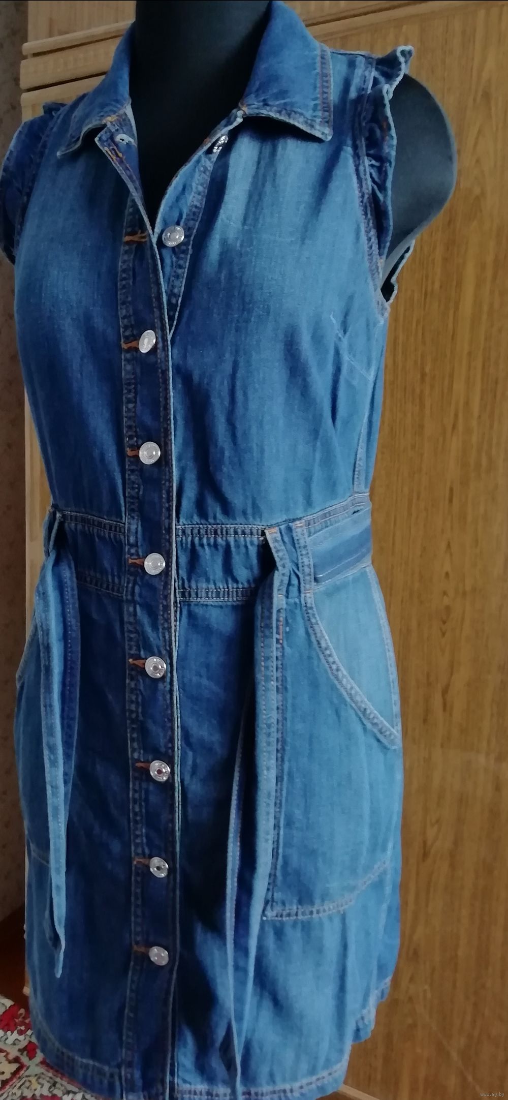 | Красивое фирменное платье из хорошего джинса, с милой отделкой по плечу в виде рюшки, накладные удобные карманы. Длинна94см. | |