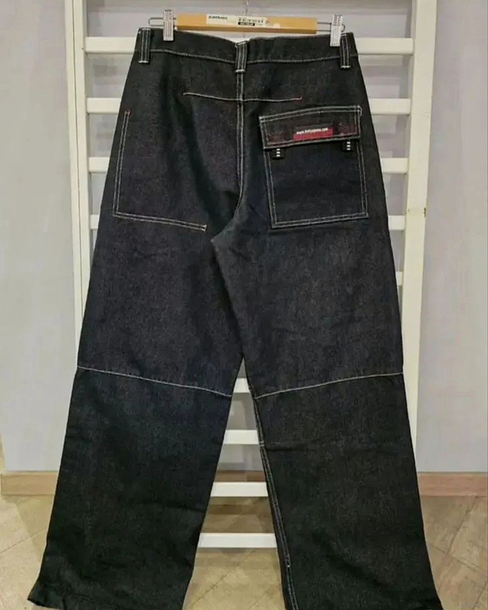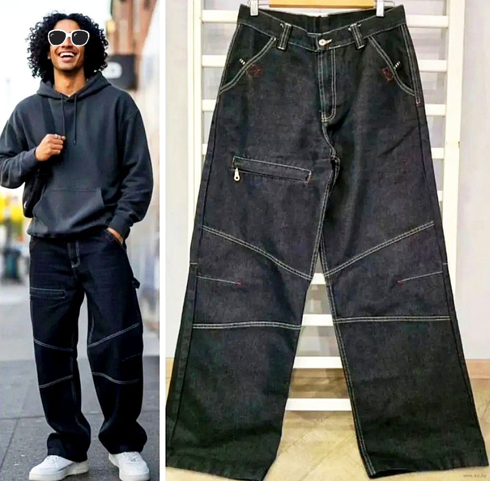 Стильные джинсы трубы, черного цвета, просроченные белой нитью.