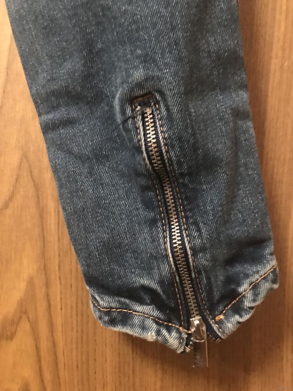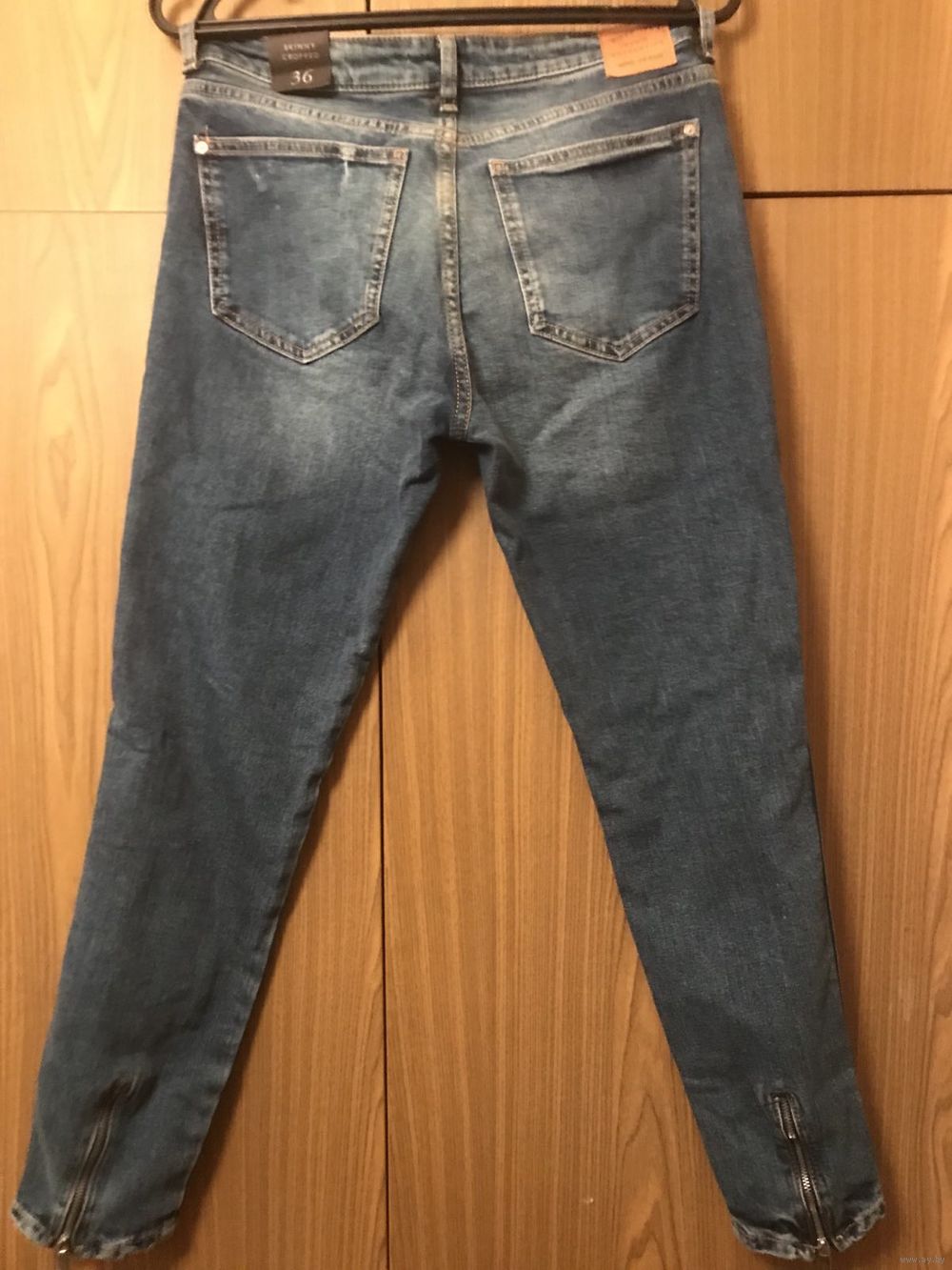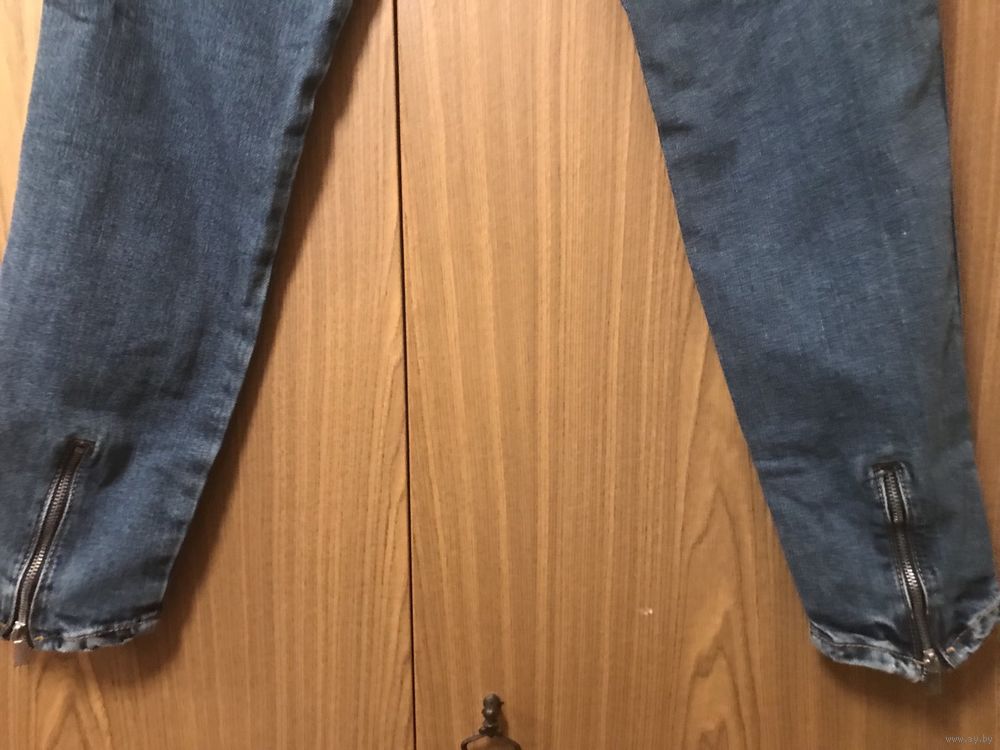 Джинсовая ткань из хлопка. Эластичная ткань. Длинный дизайн. Крой-скинни. Средняя посадка. Шлёвки. Пять карманов. Передняя застежка на молнию и пуговицу. Снизу сзади - молнии, смотрятся очень стильно.
