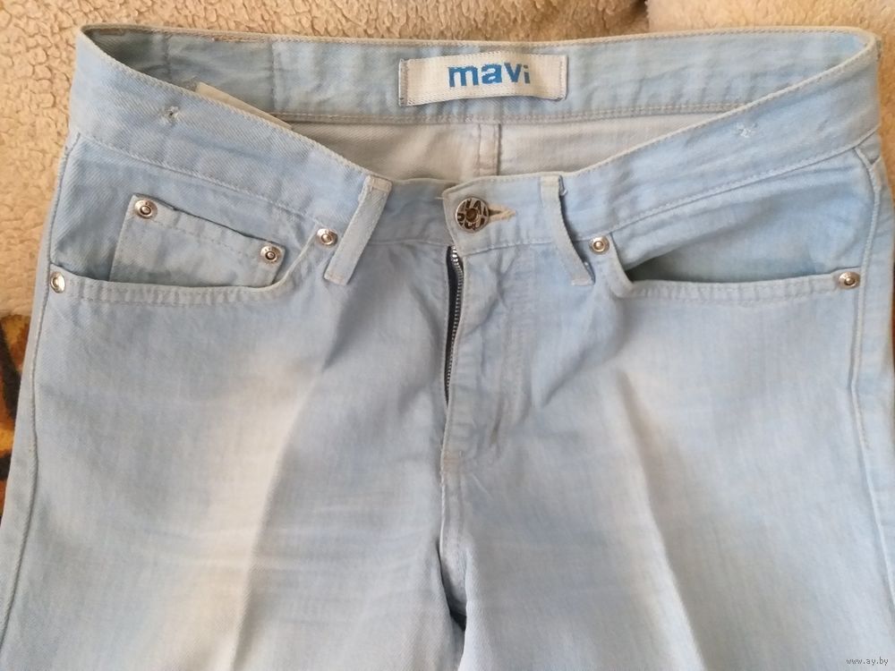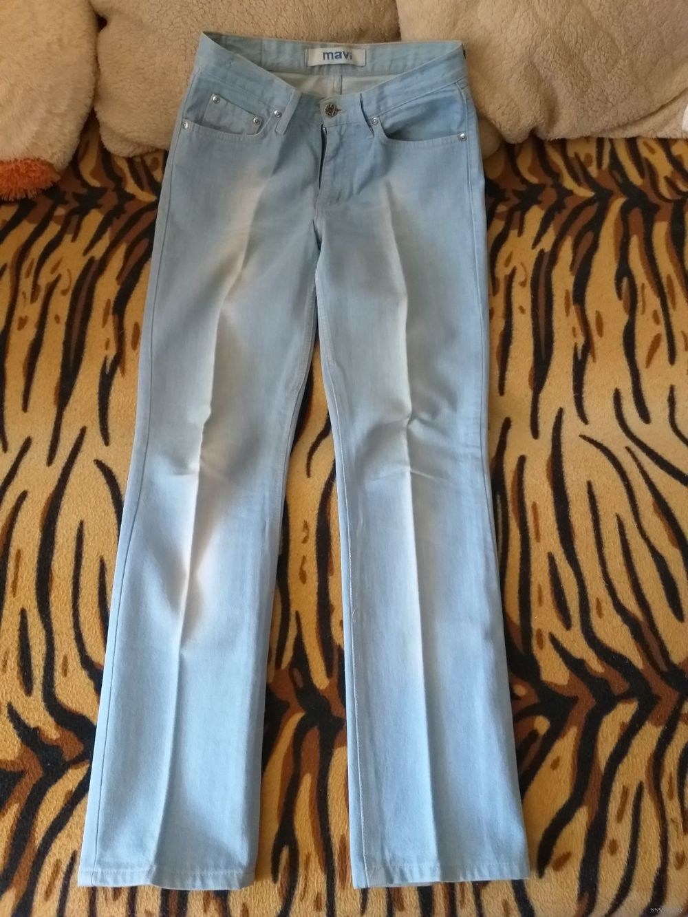 Джинсы голубые, р.44, б.у в отличном, обхват по талии -35*2=70см, объем по бедрам-46*2=92см, длина по внешнему шву-100см.