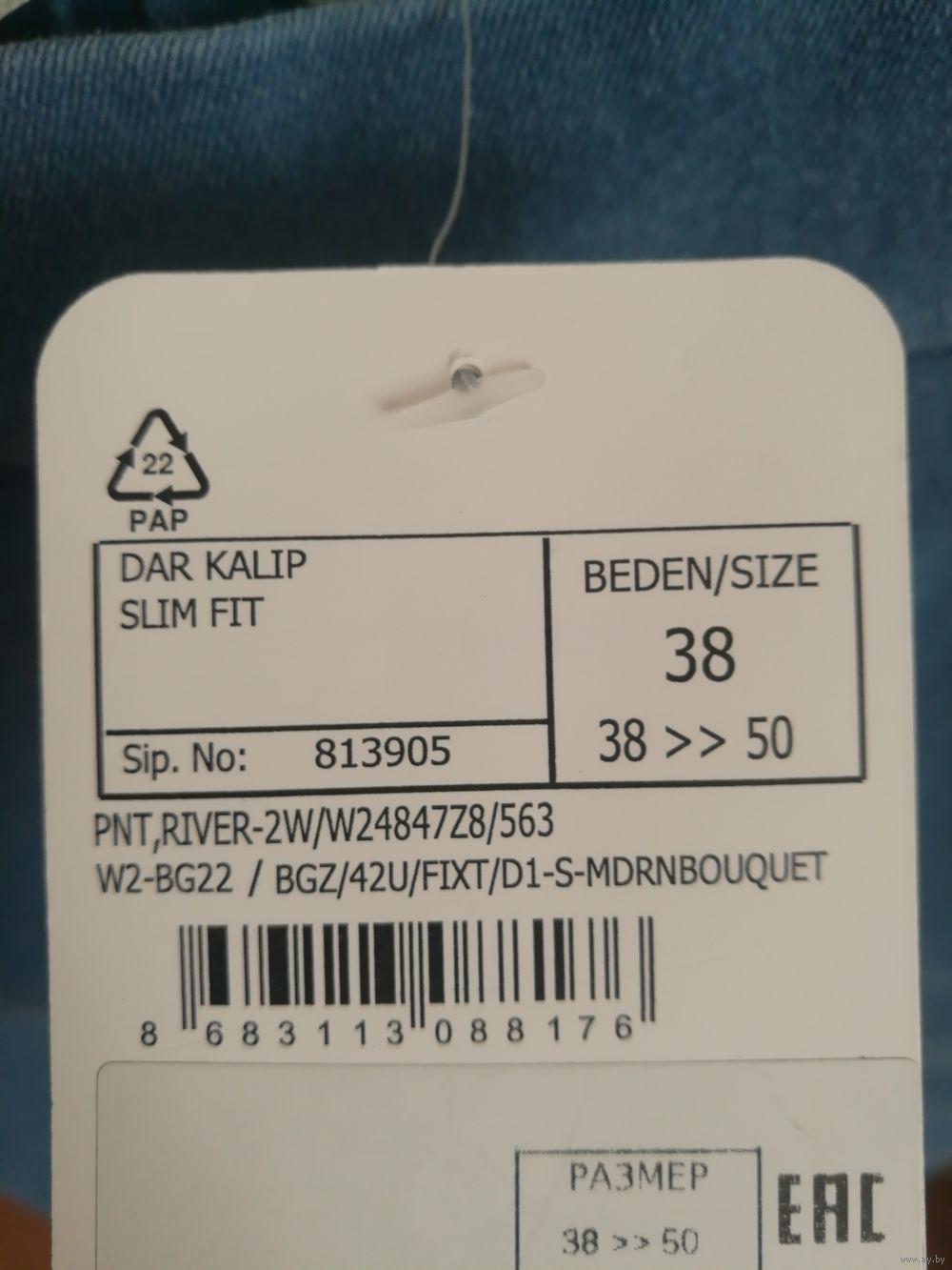 Эластичный пояс. Узкий крой slim fit.