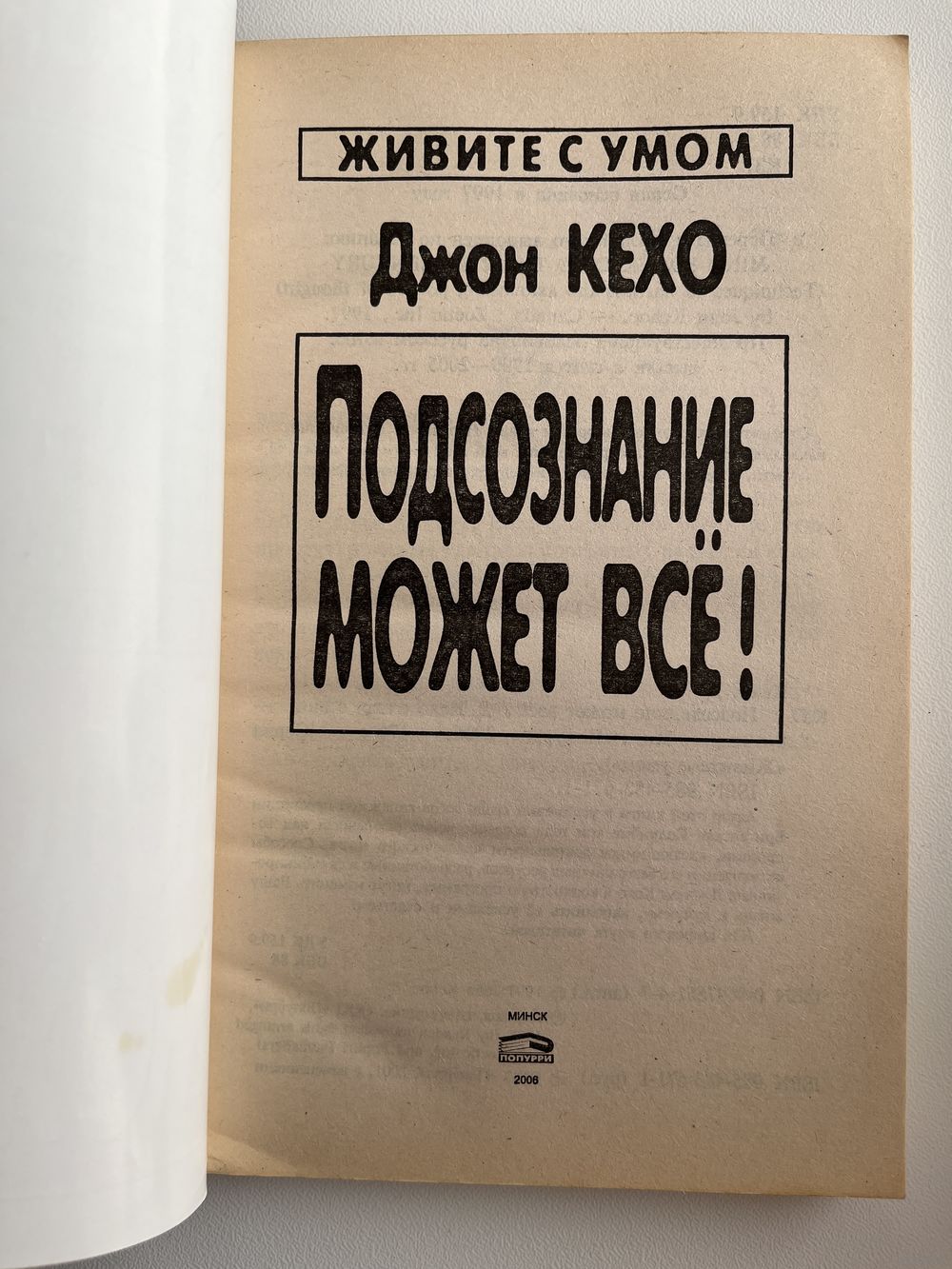 Автор этой книги в уединении средь лесов канадской провинции Британская Колумбия три года сосредоточенно размышлял над вопросами, касающимися деятельности человеческого мозга. Способы активизации его безграничных ресурсов, разработанные и скомбинированные Джоном Кехо в конкретную программу, могут изменить Вашу жизнь к лучшему, наполнить ее успехами и счастьем.