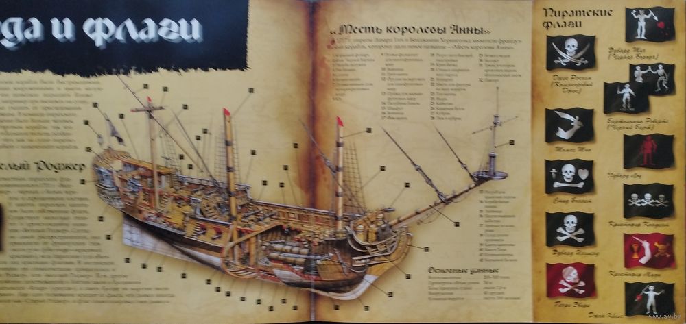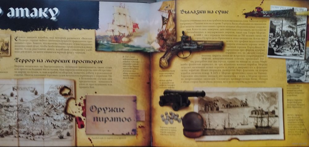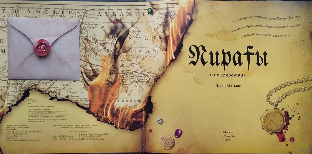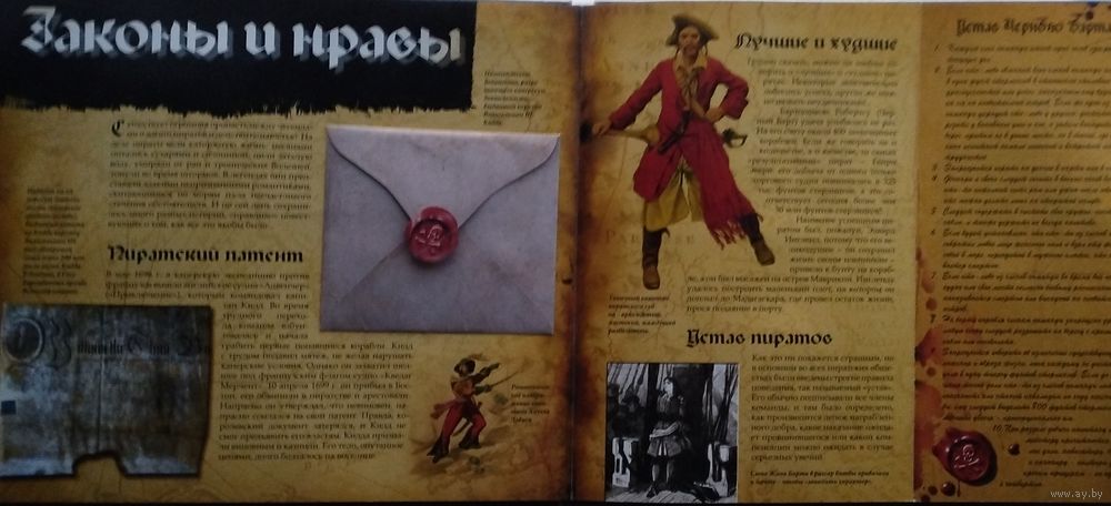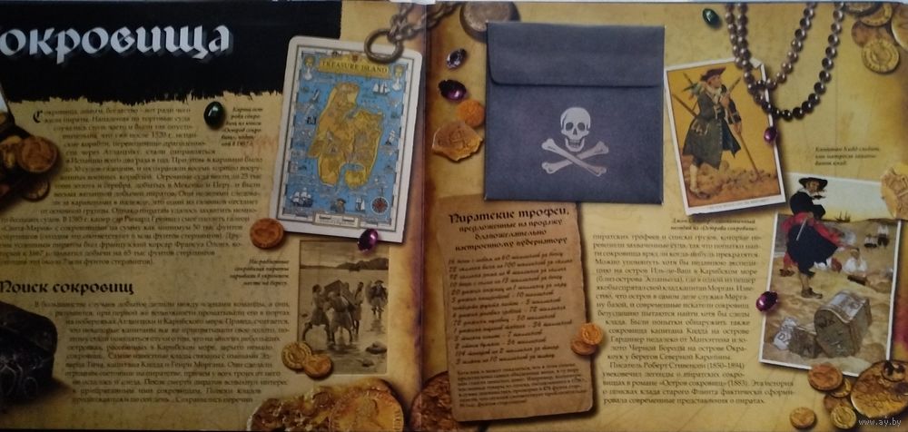 Подарочное издание. Большой энциклопедический формат. Тираж 50000 экз. "…а иногда мы надеялись, что Господь Бог, если только мы будем живы и будем хорошо вести себя, дозволит нам стать пиратами".Все о пиратах и их сокровищах в одной книге! Эта книга - это не только увлекательное содержание, но и дополнительные материалы в виде пиратских карт сокровищ, невероятных мини-книжек, пиратских флагов, игральных карт, смертных приговоров и настоящей "черной меткой". Обложка книги инкрустирована камнем и золотым зубом из сокровищницы пиратов. В книге собрано самые интересные факты про пиратов , но не стоит думать что тут все очень банально. Книга станет отличным подарком любителю морского братства.