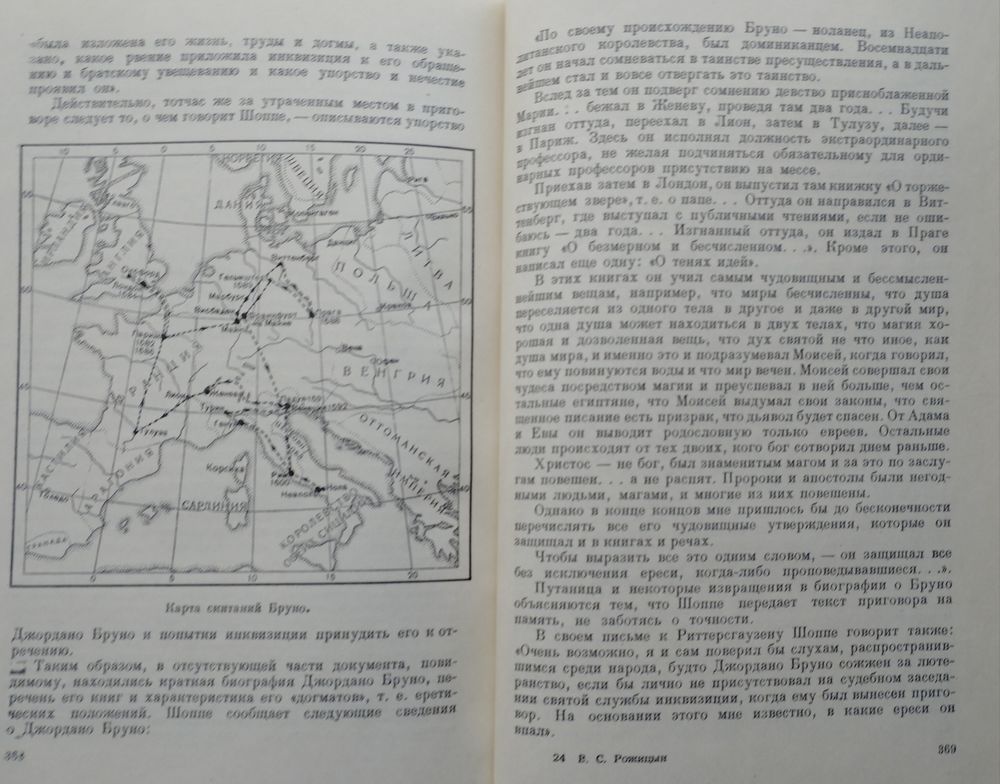 Большой формат. Тираж 15000 экз. 384 стр. Задача этой книги - осветить жизненный путь великого итальянского мыслителя - материалиста и атеиста Джордано Бруно. В ней использованы сочинения Бруно, публикации архивных материалов, высказывания современников Бруно, а также рукописи Бруно, хранящиеся в Государственной библиотеке им. В. И. Ленина. Это был воистину гражданин вселенной, сын Отца-Солнца и Земли-Матери, человек титанического дерзания и воли, неугасимого Прометеева огня, необъятного всезвездного кругозора...Есть штампы.