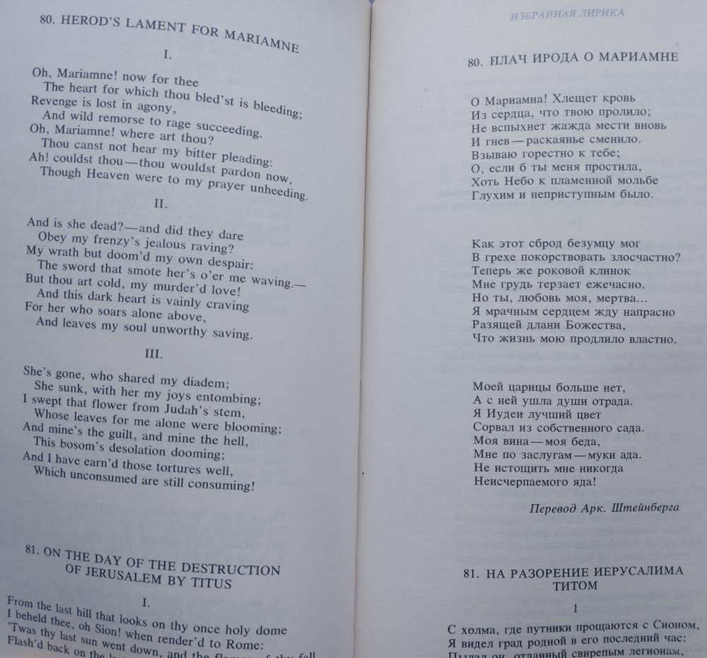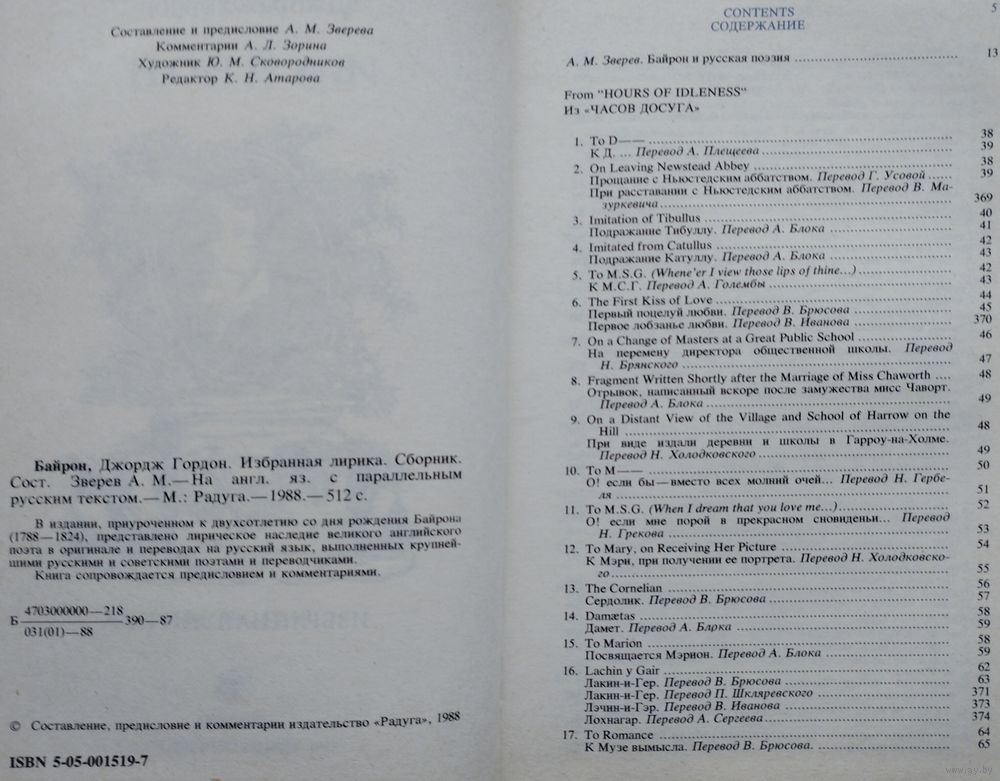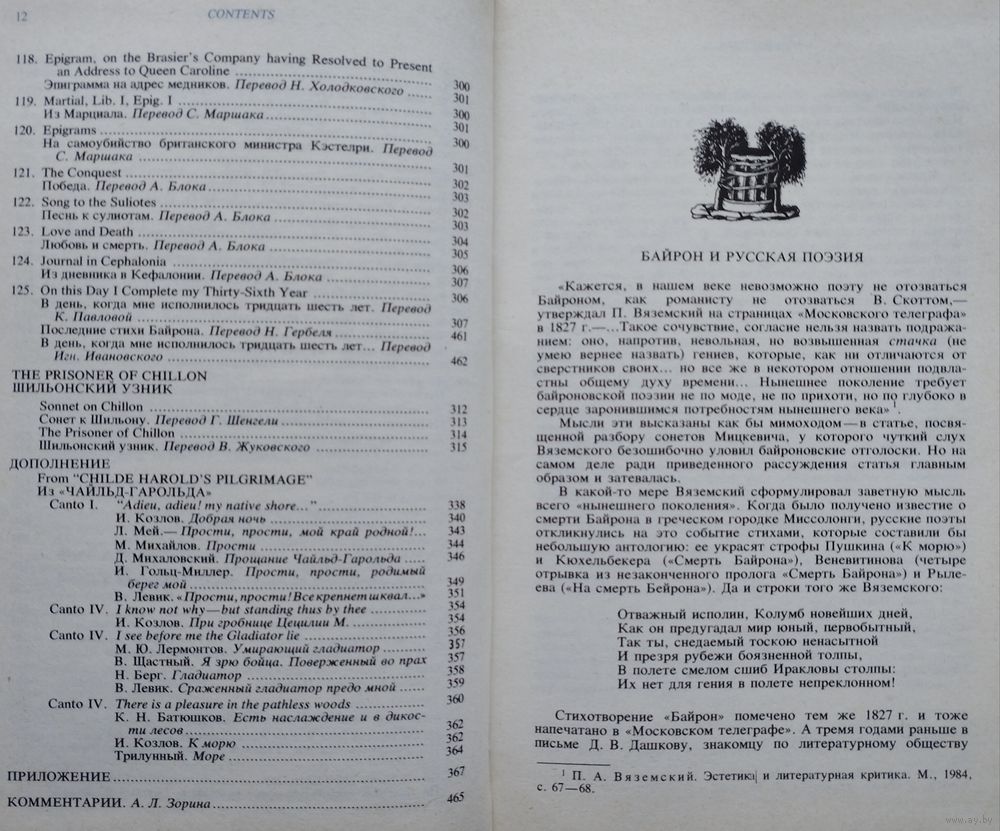 Билингва на англ. и рус. яз. 512 стр. В издании, приуроченном к двухсотлетию со дня рождения Байрона, представлено лирическое великого английского поэта-романтика в оригинале и переводах на русский язык, выполненных крупнейшими русскими и советскими поэтами и переводчиками. Книга сопровождается предисловием и комментариями.