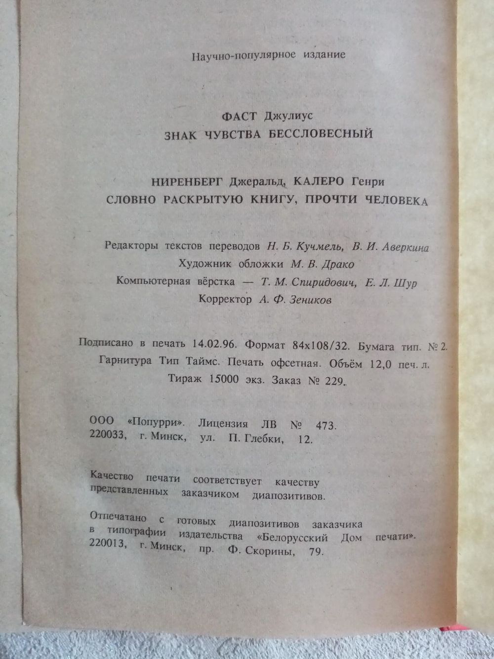 | Автор | Джулиус Фаст. Джеральд Ниренберг, Генри Калеро |