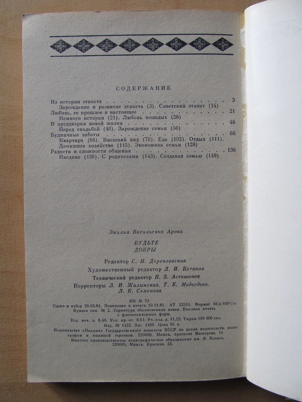 Книга посвящена актуальным вопросам советского этикета, культуры чувств и проблемам молодой семьи. Кроме того, рассматриваются вопросы культуры быта, организации семейного бюджета, ведения домашнего хозяйства. Автор приводит общепринятые нормы и правила этикета, дает их историческое, классовое, национальное, нравственное и эстетическое толкование. В книге использованы многочисленные литературные источники, опыт выступлений автора на радио, телевидении, в разнообразных аудиториях слушателей.