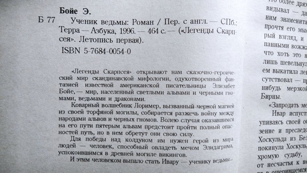 `Легенды Скарпсея` открывают нам сказочно — героический мир скандинавской мифологии, одухотворенной фантазией известной американской писательницы Элизабет Бойе, — мир, населенный светлыми альвами и черными гномами, ведьмами и драконами. Коварный волшебник Лоример, вызванный черной магией из своей торфяной могилы, собирается разжечь войну между народами альвов и черных гномов. Волею случая оказавшимся па его пути пятерым альвам предстоит пройти полный опасностей путь, но на нем обретут они свою силу. Для победы над колдуном им нужен герой из мира людей — человек, способный овладеть мечом Элидагрима, успокоившимся в древней могиле викингов. И этим человеком выпало стать Инвару — ученику ведьмы...