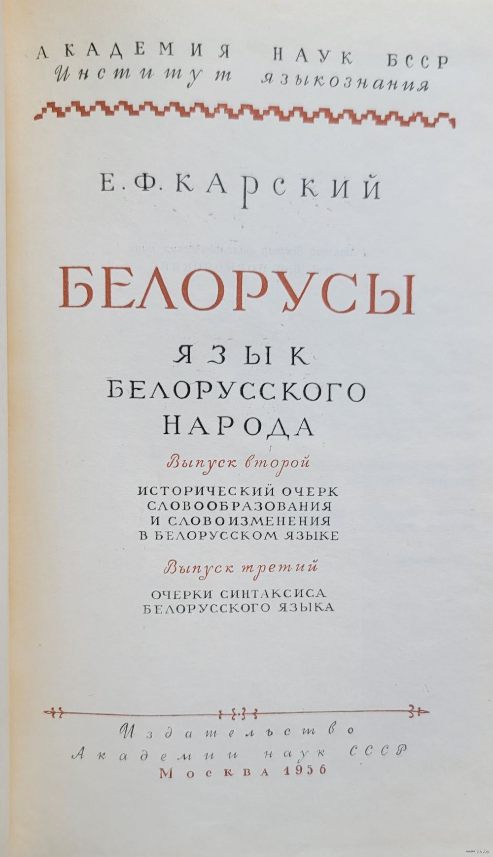 Е.Ф. Карский БЕЛОРУСЫ Язык Белорусского народа в 3-х выпусках