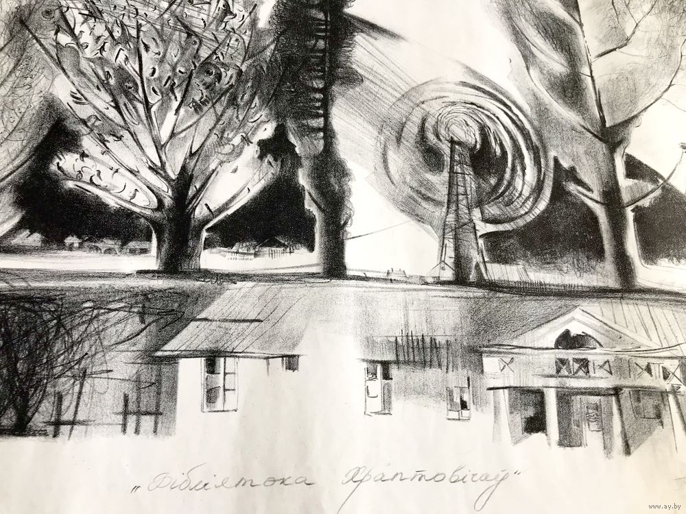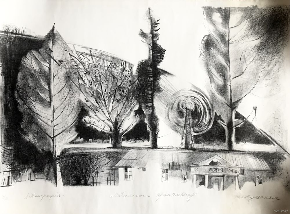 Литография «Бiблiятэка Храптовiчау» белорусской художницы Елизаветы Пастушенко. Размер 73х50см., состояние хорошее.