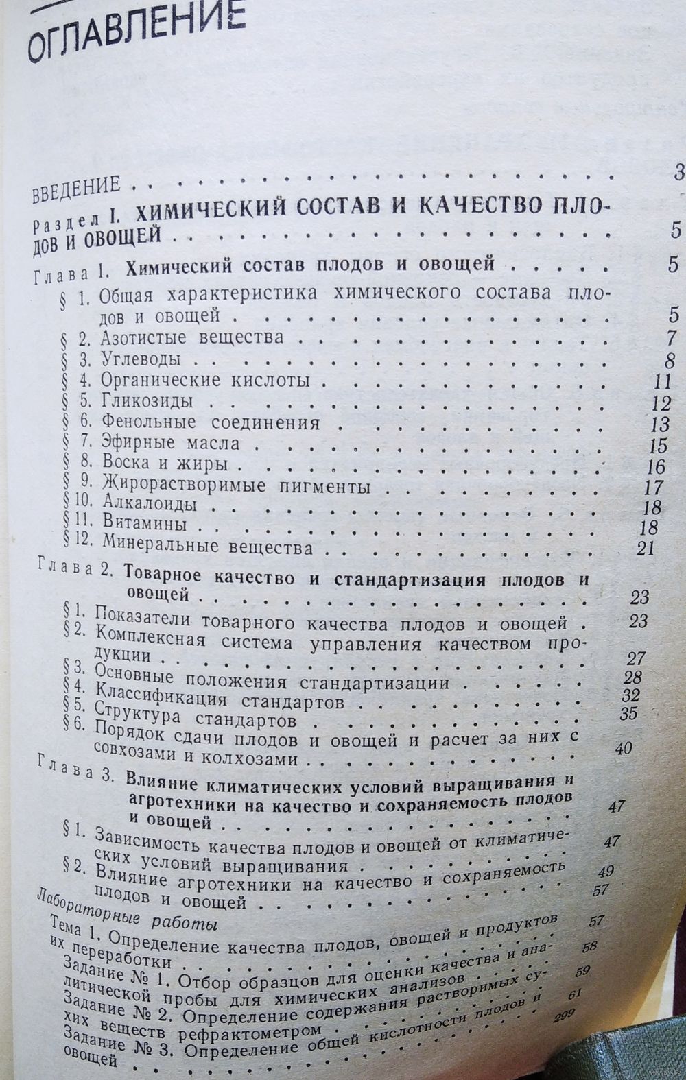 Учебное пособие включает три раздела: `Химический состав и качество плодов и овощей`, `Хранение плодов и овощей`, `Переработка плодов и овощей`. В третьем издании даны новые сведения о процессах, протекающих в плодах и овощах во время хранения, о применении ферментов в консервировании, о порядке сдачи плодоовощной продукции и расчете за нее совхозами и колхозами.