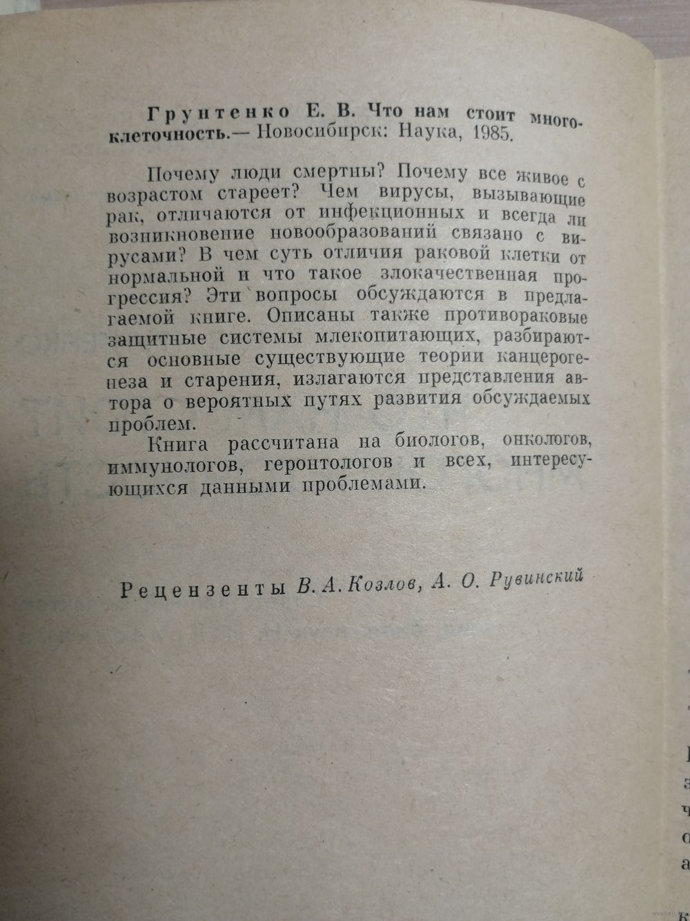 Книга расчитана на биологов, онкологов, иммунологов, геронтологов и всех, интересующихся данными проблемами.