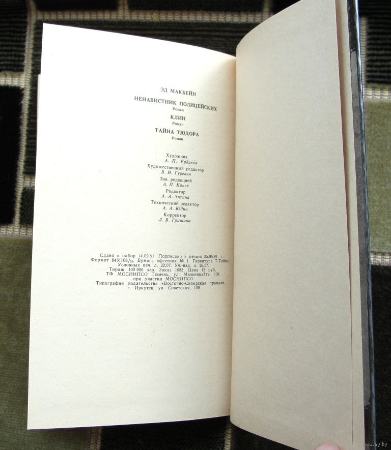 В книгу вошли три романа Э. Макбейна - "Ненавистник полицейских", "Клин", "Тайна Тюдора". Все романы - образец настоящего американского детектива.