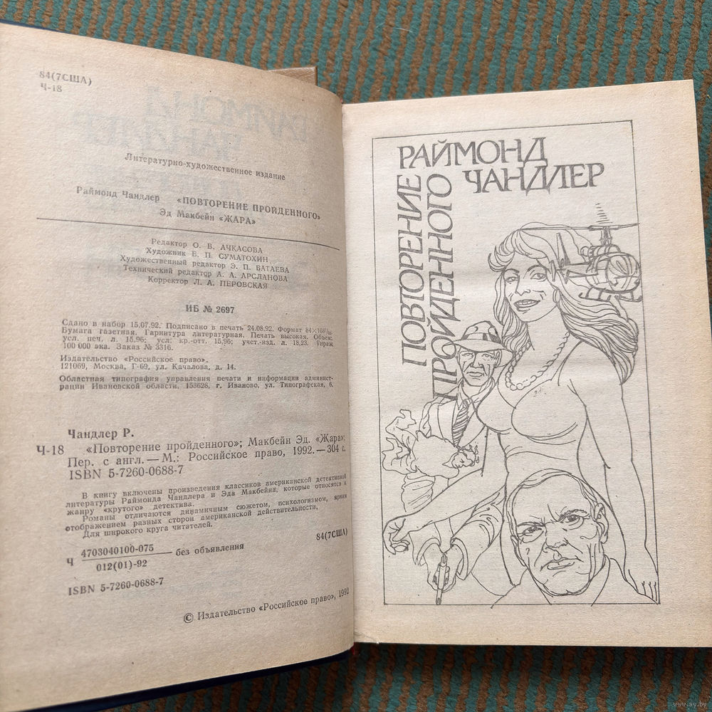 1) Толкач. Мошенники - Р. Чандлер2) Американские детективы. Р. Чандлер "Повторение пройденного" и Эд Макбейн "Жара"304 стр. переплет 1992г