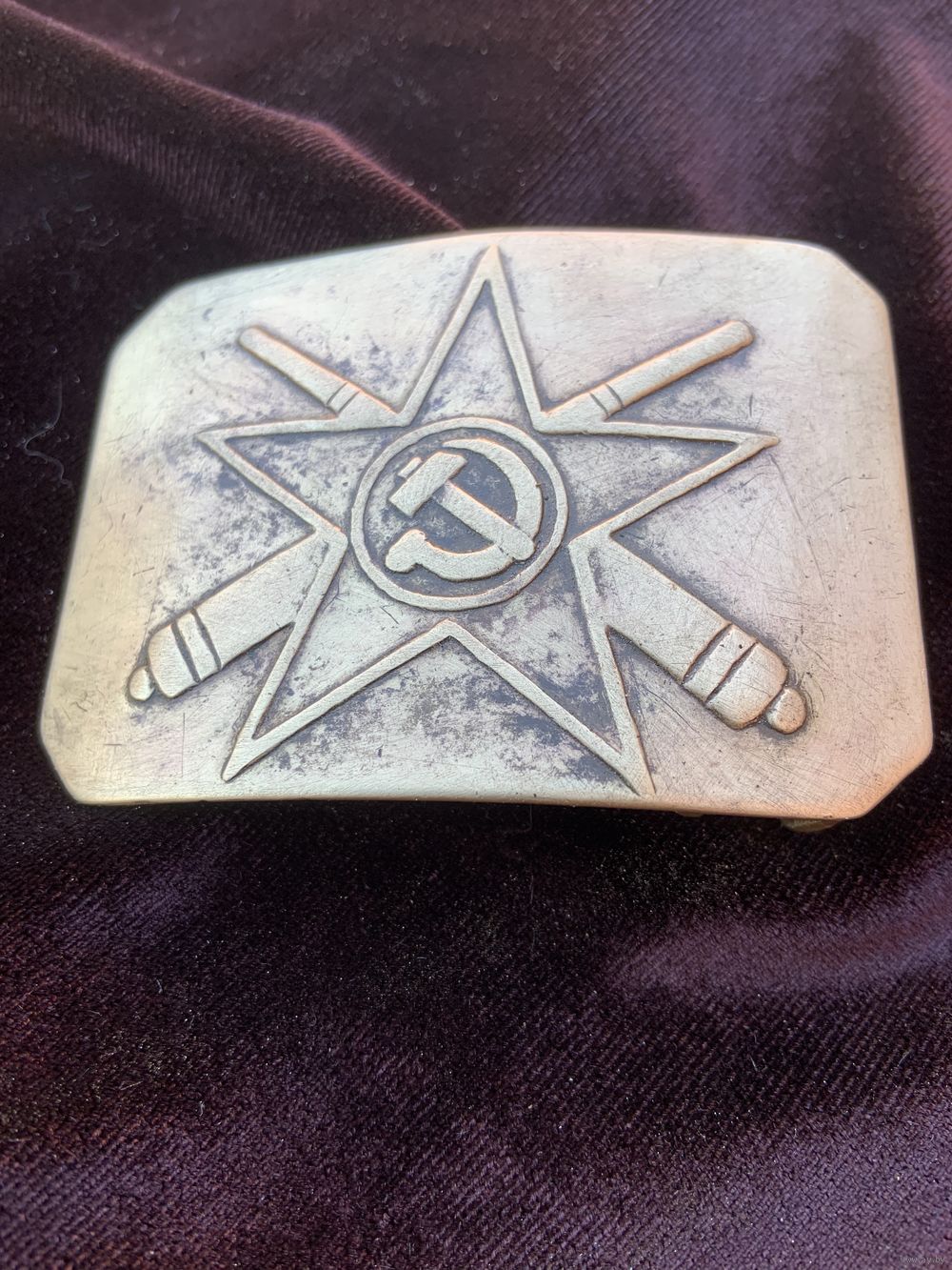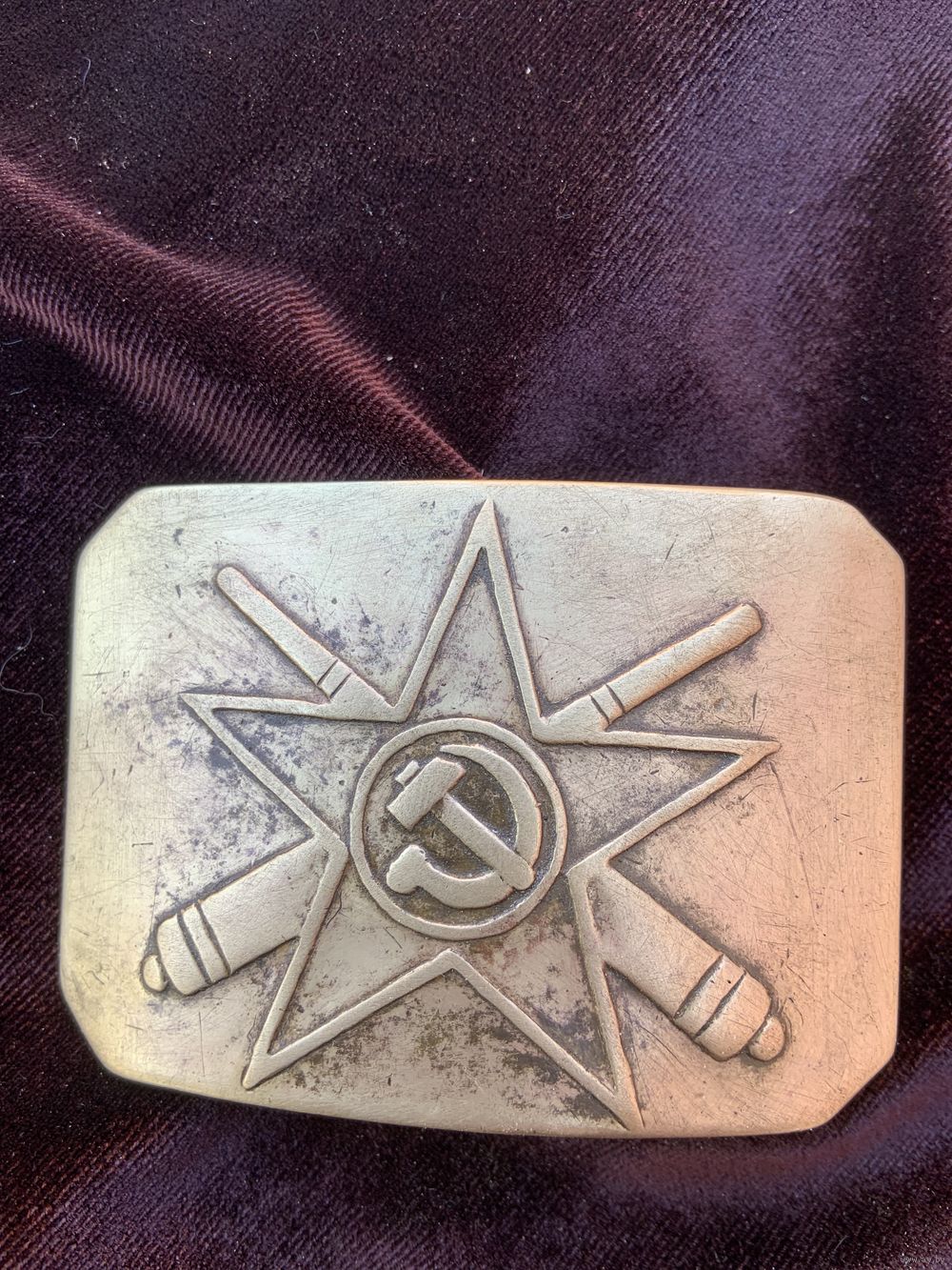 И краткий ликбез для 99.99 % " шпециалистов "-первый образец ПАРАДНОЙ пряги-а выставленная также является ПАРАДНОЙ, был утверждён ещё в 1936 году под суконное обмундирование курсантов и для участия в парадах. Но реально только в 1939 году курсанты Московского гарнизона были обеспечены теми прягами для парада на 1 Мая-сказалась сложность изготовления. А выставленная пряга была ВНЕПЛАНОВО изготовлена именно для артиллерийских школ ! не училищ, созданных Наркомпросами союзных республик при поддержке наркомата обороны СССР. К парадной пряге полагался только кожаный коричневый ремень 45 мл. Все детали узнаём заранее! На одном редчайшем фото из воен.энциклопедии , перед войной-см. образец гимнастерки, и показаны курсанты спец.школы в в кож.ремнях и с такими прягами!!! Обратная сторона пряги была сильно залита припоем-или попала в сильный огонь и припой расплавился или кто-то из никчемных пайщиков переборщил во время пайки-видно одна из дужек усиливалась пайкой! Следы припоя остались немного особенно в районе серпа а так очистил с помощью ножа очень неплохо!
