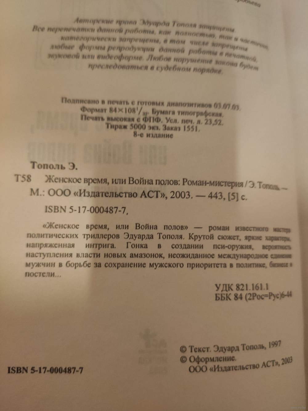 Эдуард Тополь "Женское время, или Война полов". Роман-мистерия.