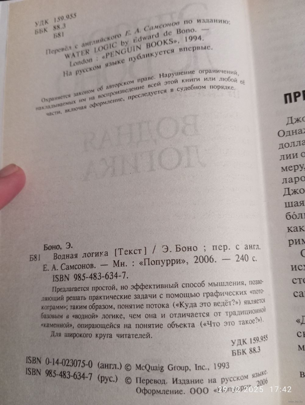 Эдвард де Боно. Водная логика. Мн. Попурри 2006. В прекрасном состоянии, тв переплет. 240 с. Тираж 3500. Иллюстрации. Достаточно редкая. Возможность отправки Белпочтой, полная предоплата