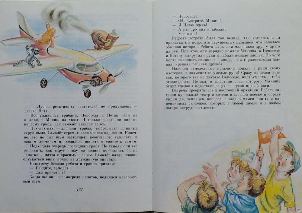 Большой энциклопедический формат. 128 стр. Непоседа, Мякиш и Нетак - три непоседливых игрушечных человечка. Один сделан из тонких пружинок, второй - из пластилина, а третий - из очень твердого сучковатого дерева. Но в остальном они нисколько не отличаются от настоящих мальчишек, и поэтому их приключения - самые настоящие и очень-очень интересные! Трое друзей взялись спасти своего создателя, мальчика Петю Мамина-Папина, от чрезмерной опеки родителей, сделавшей беднягу ленивым и толстым. А во второй части повести Непоседа, Мякиш, Нетак и Петя отправляются в космическое путешествие.