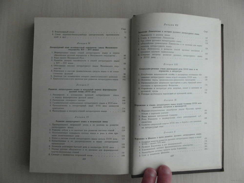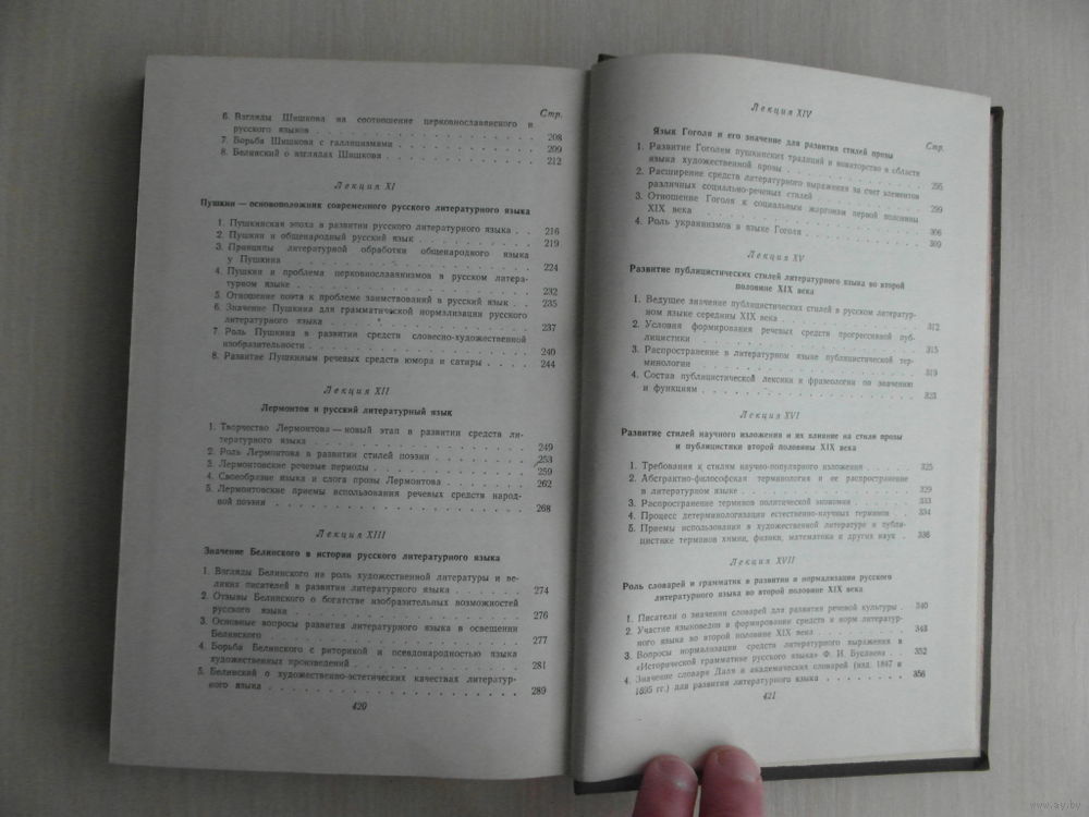 Содержание: Литературный язык и задачи изучения его истории. Происхождение русского лит-го языка. Светские и церковно-книжные стили лит. языка древнерусской народности (эпоха Киевской Руси). Лит. язык великорусской народности (эпоха Московского гос-ва XIV-XVI веков). Развитие лит. языка в начальный период формирования русской нации (XVII век). Развитие лит.языка в петровскую эпоху. Значение Ломоносова в истории Русского литературного языка. Социально-речевые стили разговорной речи XVIII века и их отражение в литературе. Отражение в стилях лит. языка второй половины XVIII века классовых интересов и противоречий. Карамзин и Шишков о путях развития русского лит-го языка. Пушкин - основоположник современного русского лит. языка. Лермонтов и русский лит. язык. Значение Белинского в истории русского лит. языка. Язык Гоголя и его значение для развития стилей прозы. Развитие публицистических стилей лит. языка во второй половине XIX века. Развитие стилей научного изложения и влияние на стили прозы и публицистики второй половины XIX века. Роль словарей и грамматики в развитии и нормализации русского лит. языка во второй половине XIX века. Значение ораторской речи для развития устной формы лит яз. в XIX веке. Взгляды Горького на язык худ. произ. и его борьба за чистоту и богатство лит. языка. Лит. язык советской эпохи.
