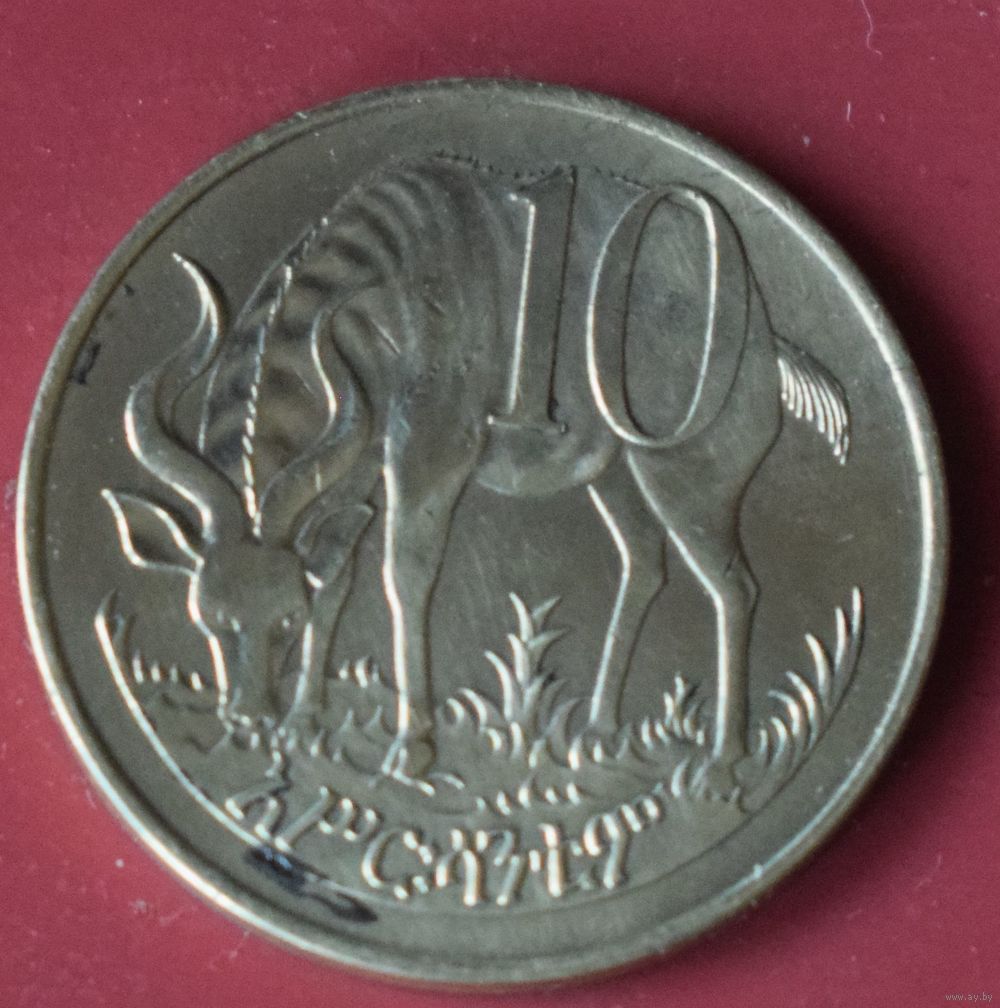 Эфиопия 10 центов 1977. Маленькая голова льва. Волоски не касаются подбородка
