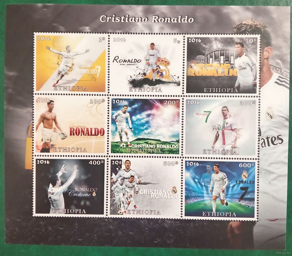 Эфиопия 2016. Великие футболисты. Криштиано Роналдо. Малый лист
