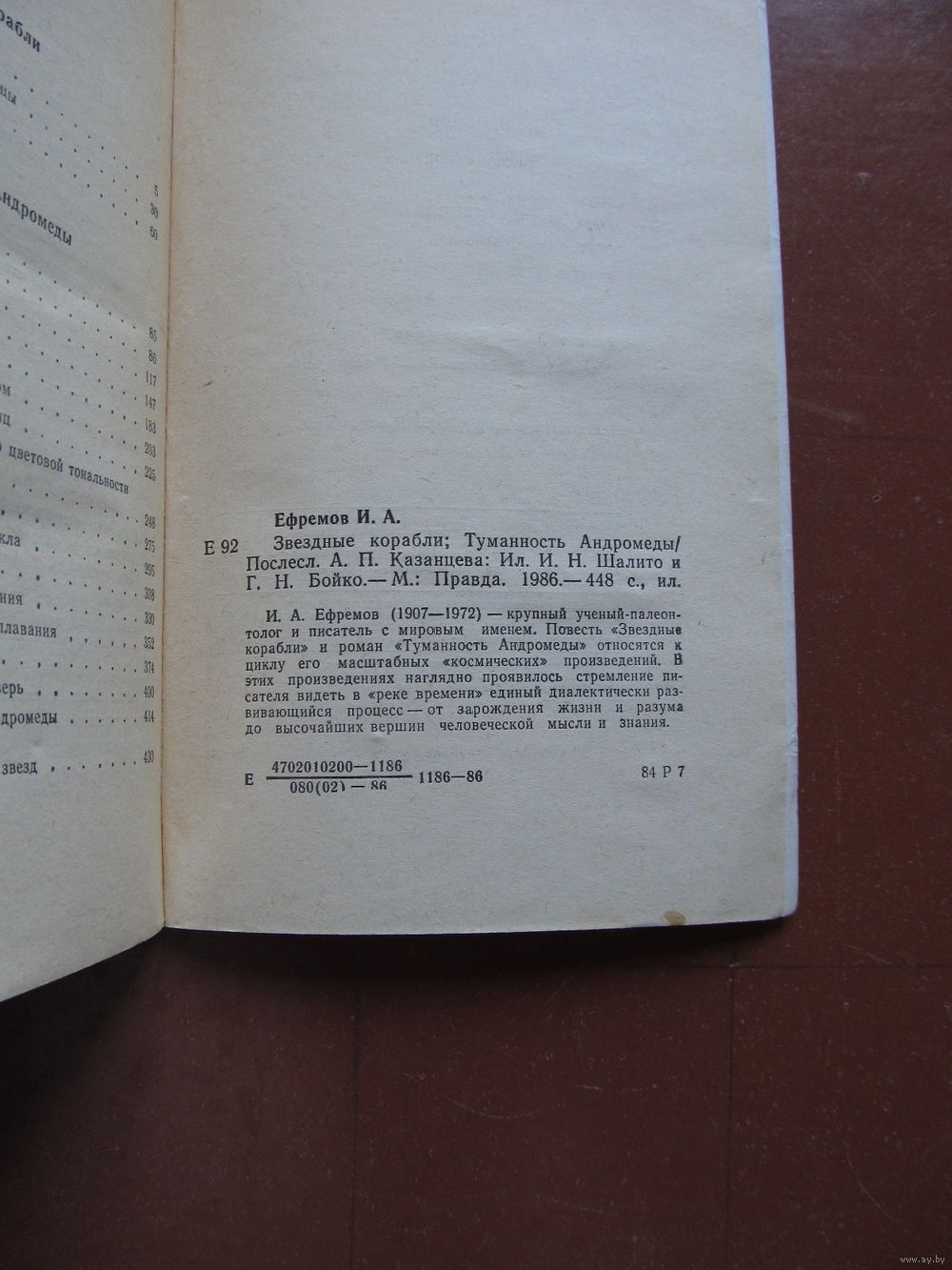 «Туманность Андромеды» – одно из самых известных и масштабных произведений Ивана Ефремова. В романе автор создал необычный, красивый и многоплановый мир будущего, устроенный разумно и гуманно. Главная тема «Туманности Андромеды» – космическая взаимопомощь в беспредельном развитии разума.«Звездные корабли» – повесть, объединившая в себе две темы, которые интересовали писателя: палеонтологию и Космос. Рекомендации : 16+