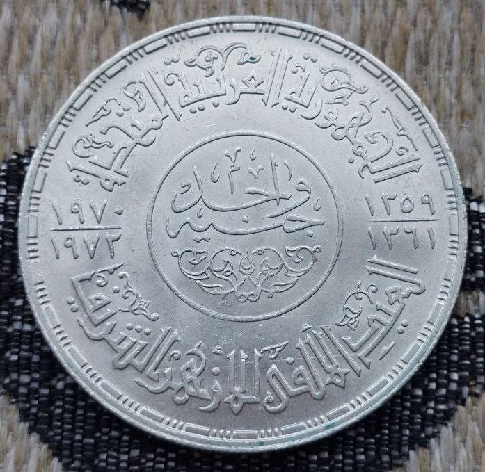 Египет 1 фунт (pound) 1970, UNC. "1000 лет Мечети аль-Азхар". Серебро! Сторгуй за свою цену, предложи обмен! Y120