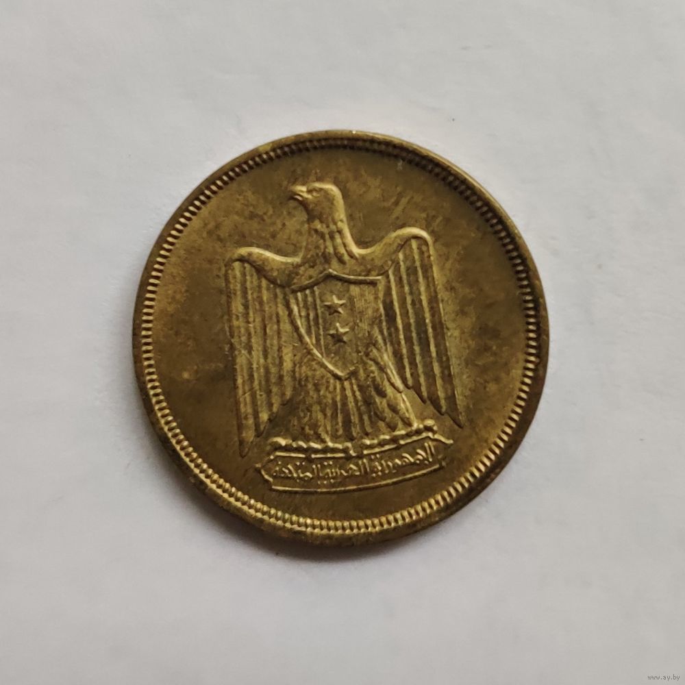 Номер KM# 395 Страна Египет Период Объединённая Арабская Республика (1958 - 1971) Валюта Египетский фунт Вид чекана Регулярный чекан Номинал 10 миллим Год 1958 - 1966 Материал Алюминиевая бронза Гурт Гладкий Форма Круг Отношение авс/рев Медальное (0°) Вес (g) 4,9 Диаметр (mm) 23,2 Толщина (mm) 1,7