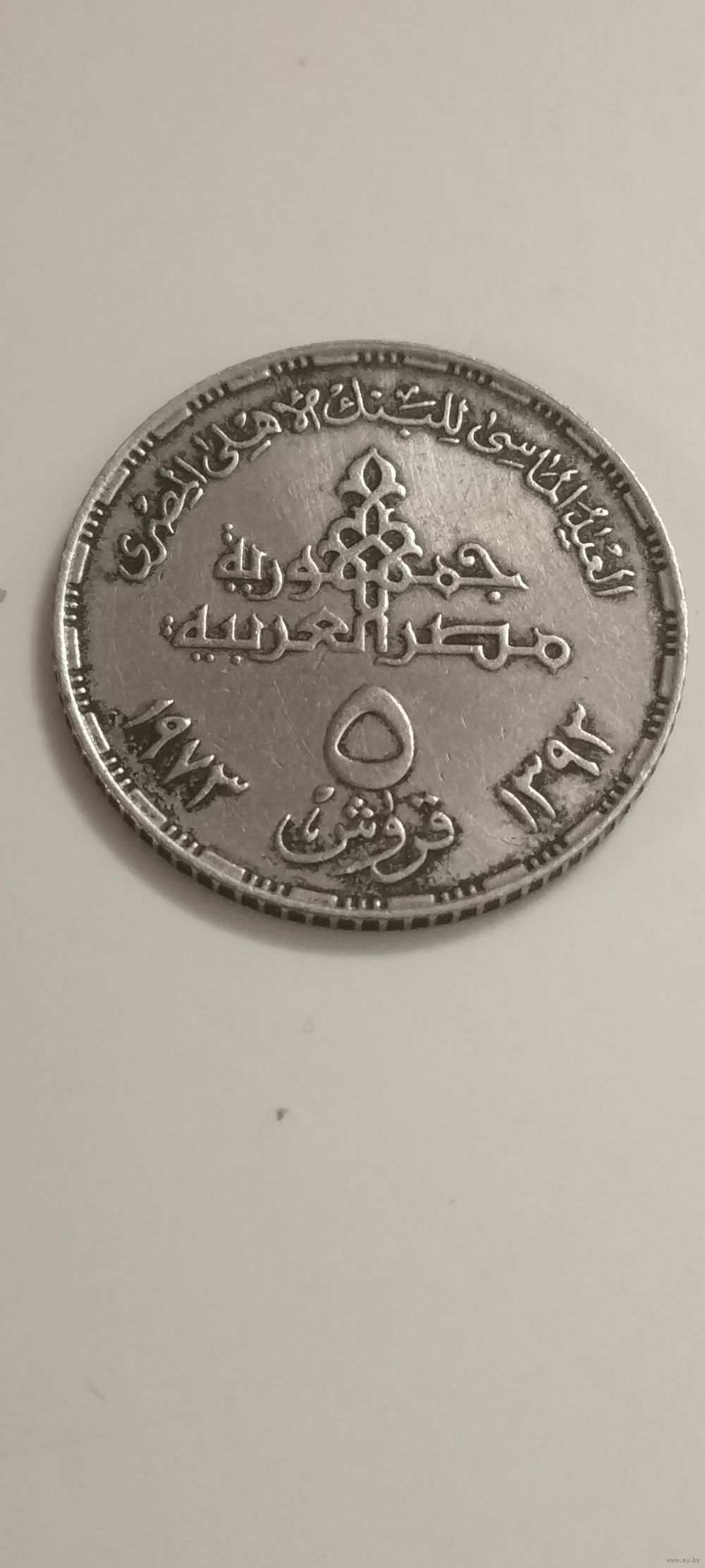 Египет 5 пиастров 1973г. 75 лет нац. банку Египтп