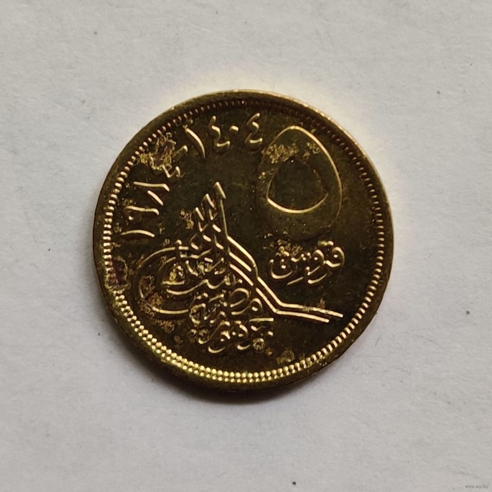 Номер KM# 622 Страна Египет Период Арабская Республика Египет (1971 - 2025) Валюта Египетский фунт Вид чекана Регулярный чекан Номинал 5 пиастров Год1984 - ١٩٨٤ Материал Алюминиевая бронза Гурт Гладкий Форма Круг Отношение авс/рев Медальное (0°) Вес (g) 4,9 Диаметр (mm) 23 Толщина (mm) 1,8