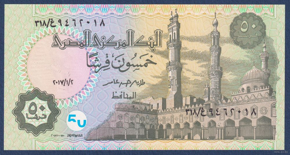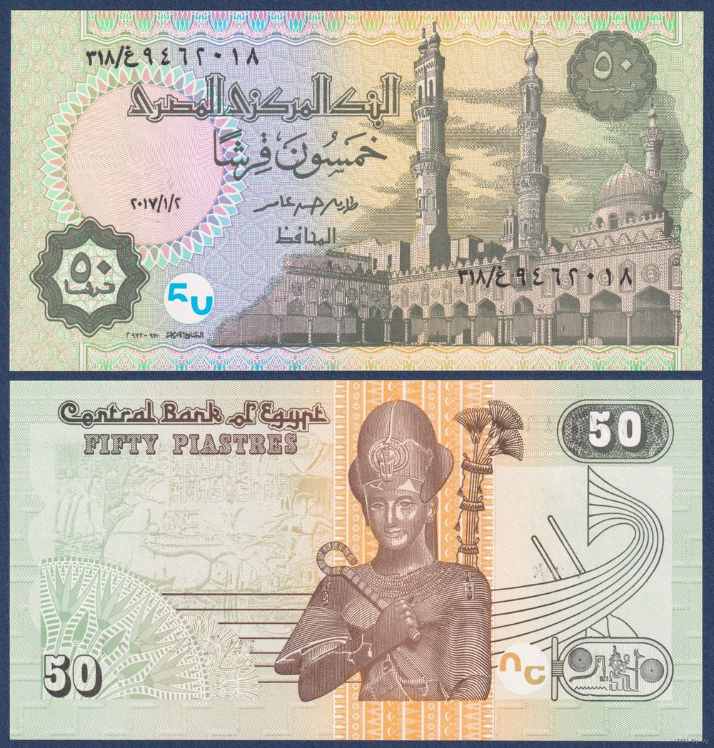 Египет, 50 пиастров 2017 г, P-70a (02.01.2017, мечеть Аль-Азхар в Каире, Рамсес II), UNC
