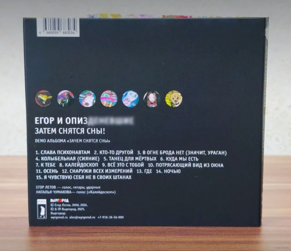 У Егора изначально был план впоследствии издать это демо отдельным диском, причем именно как «Егор и опизд..», но при его жизни мы не успели. Так что спустя почти 20 лет вы его услышите. Я хотела, чтобы у него было достойное оформление, и художник Сергей Сыров (человек, благодаря которому выходят, например, «Посевы» – он делал оцифровки) с некоторой моей помощью, используя всевозможные источники – вырезки из журналов и книг, наши с Егором фото, а главное, детские рисунки Егора из школьных альбомов – всякие цветы и кактусы, сотворил три новых коллажа в смешанной технике, все на тему старозаветного ковчега.