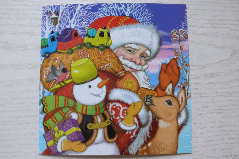 Егорова Ирина; Новый год, Дед Мороз, снеговик, снегирь; 2017, чистая (13,5*13,5см).