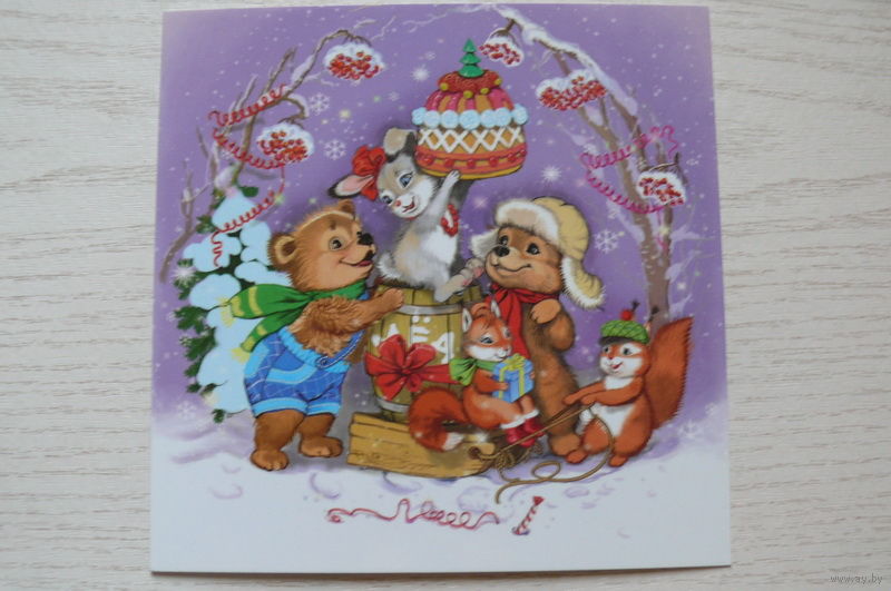 Егорова Ирина; Новый год, медведь, белка, заяц, мёд; 2017, чистая (13,5*13,5см).