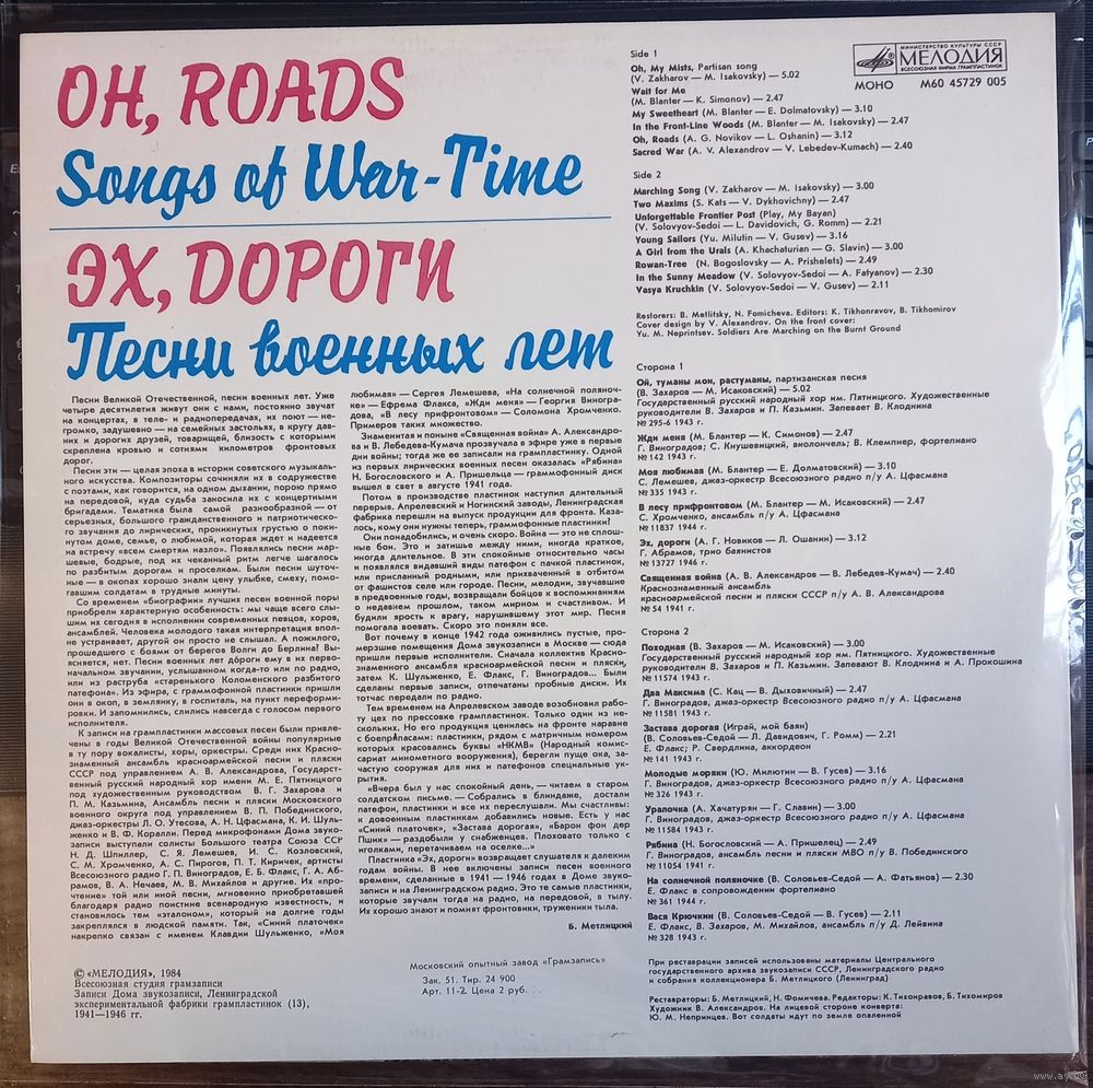 | Исполнитель | Эх, Дороги. Песни Военных Лет |