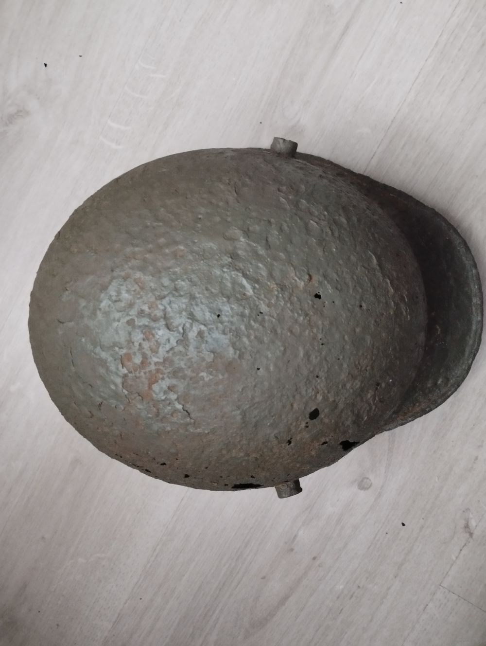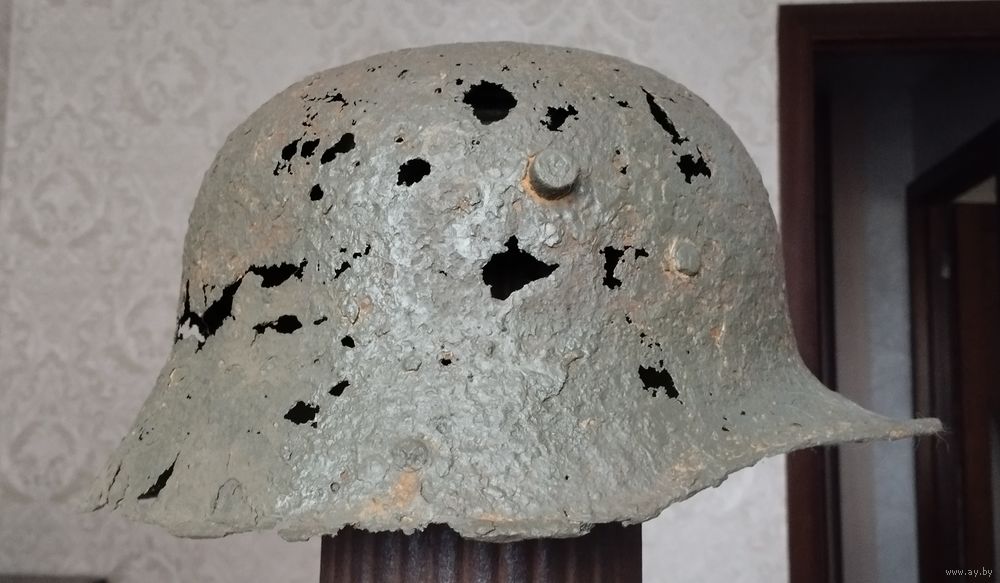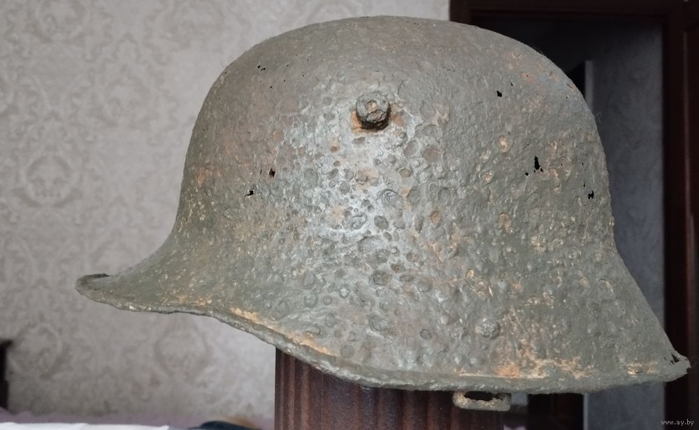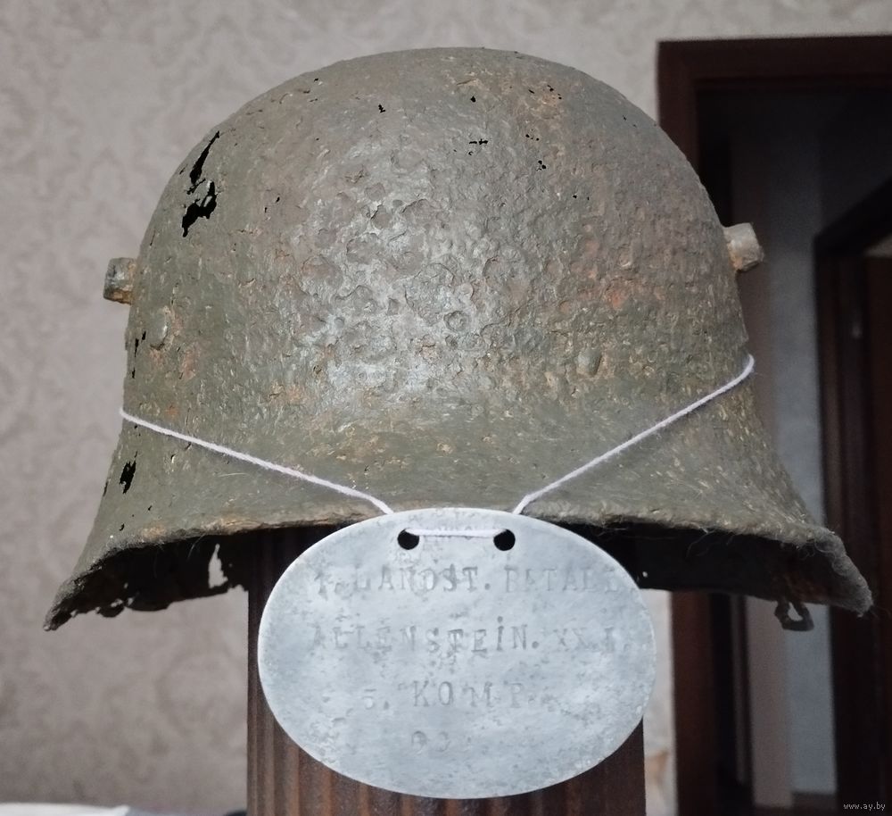 Немец М16 . Геометрия не нарушена, но сама каска убита временем. Немного кислочен и слегка покрашен . Жетон цинк. Чищен очень мелкой наждачной. Состояние отличное . Найдено всё под Сморгонью, но по отдельности.