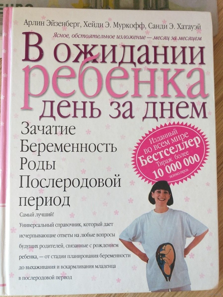 Арлин Эйзенберг, Хэйди Э.Муркофф и др -В ожидании ребёнка день за днем (зачатие, беременность, роды, послеродовой период), тираж более 10.000.000экз, Москва, АСТ Астрель, 2006г, 253стр, большой формат книги, в конце книги есть Дневник будущей мамы, в котором можно по неделям фиксировать рост и записывать всю информацию о малыше.