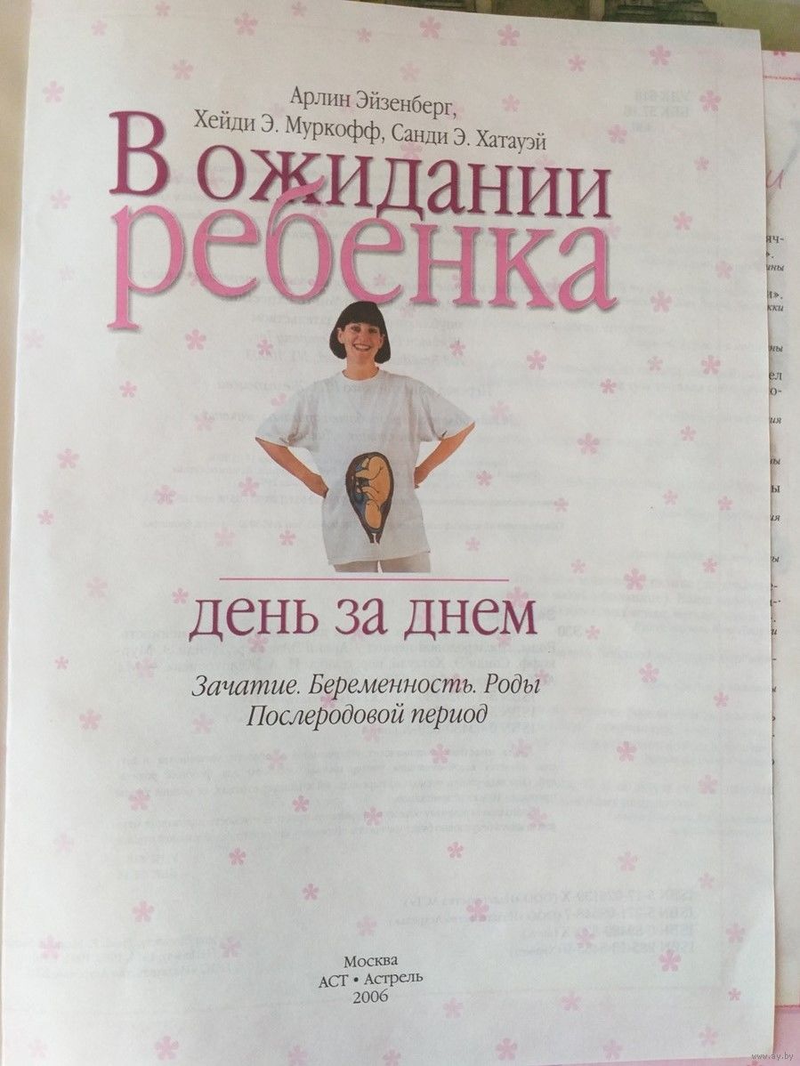 Арлин Эйзенберг, Хэйди Э.Муркофф и др -В ожидании ребёнка день за днем (зачатие, беременность, роды, послеродовой период), тираж более 10.000.000экз, Москва, АСТ Астрель, 2006г, 253стр, большой формат книги, в конце книги есть Дневник будущей мамы, в котором можно по неделям фиксировать рост и записывать всю информацию о малыше.