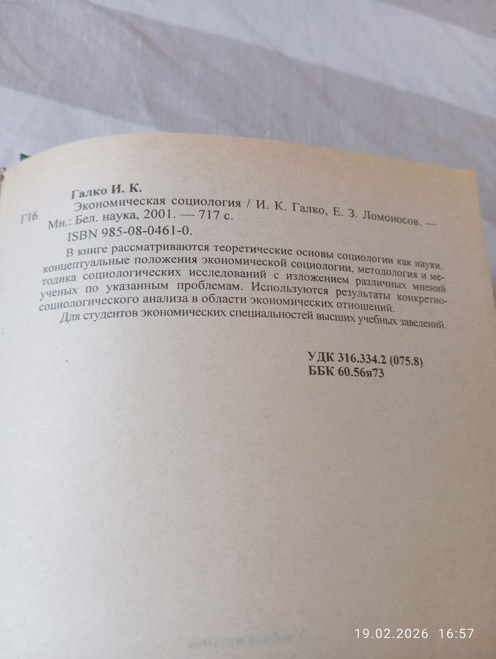 Экономическая социология. Галко И. С автографом. Мн. Белорусская наука 2001. В хорошем состоянии, тв переплет. 717 с. Тираж 3000. Возможность отправки Белпочтой, полная предоплата