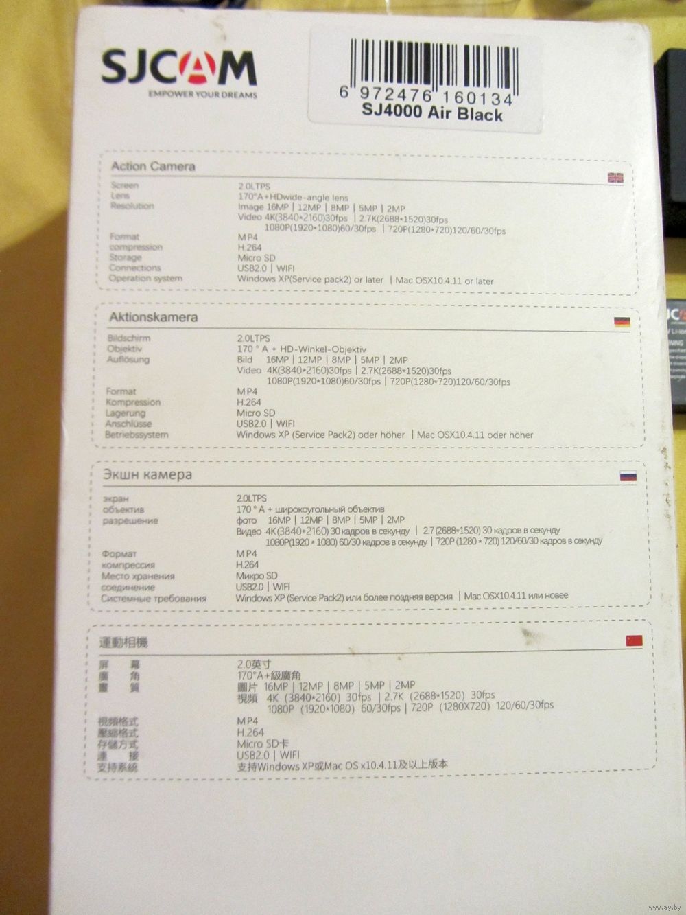 Экшн-камера SJCAM SJ4000 Air, водонепроницаемая, 4K, 30 м, 2,4 ГГц, Wi-Fi, SJ4000, Standard