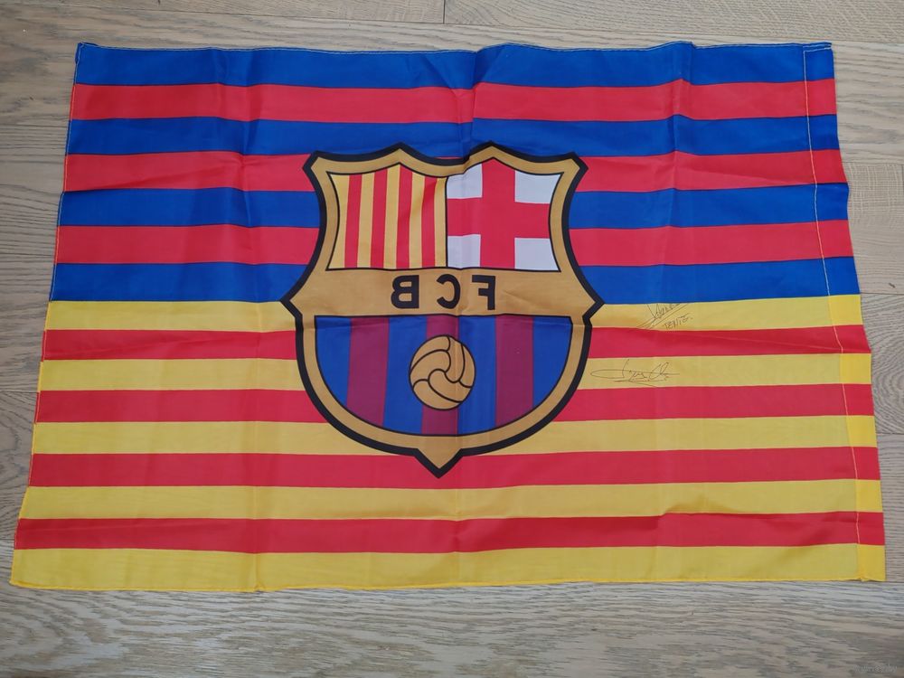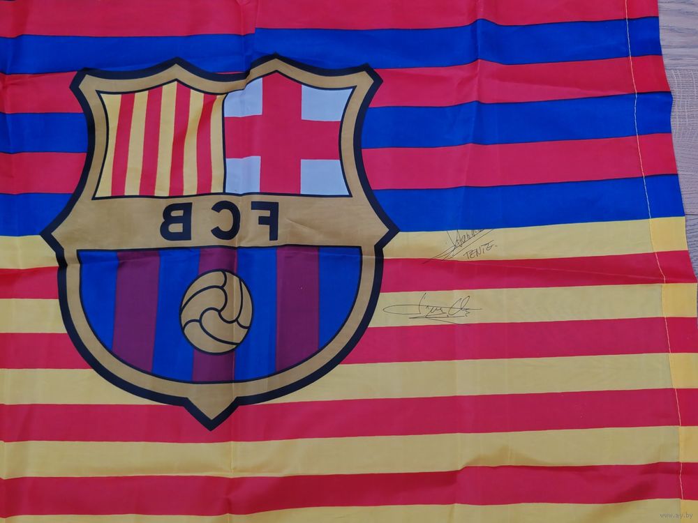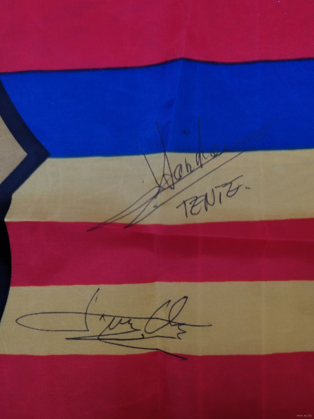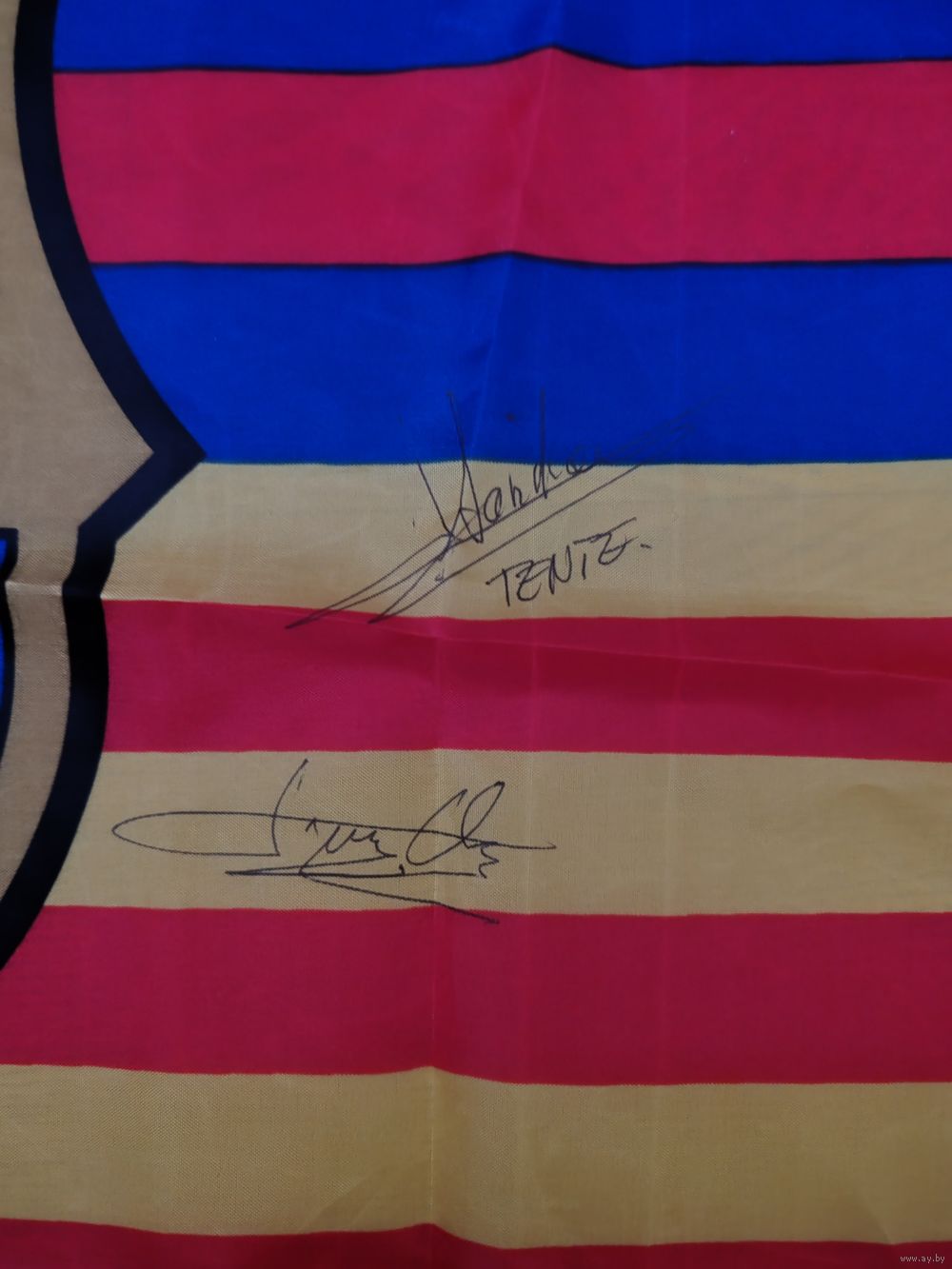 Продается уникальный экземпляр — официальный флаг FC Barcelona (75×50 см) с оригинальными автографами двух легенд клуба 80-х годов. Состояние флага — идеальное (как новый), без выцветания и дефектов.
