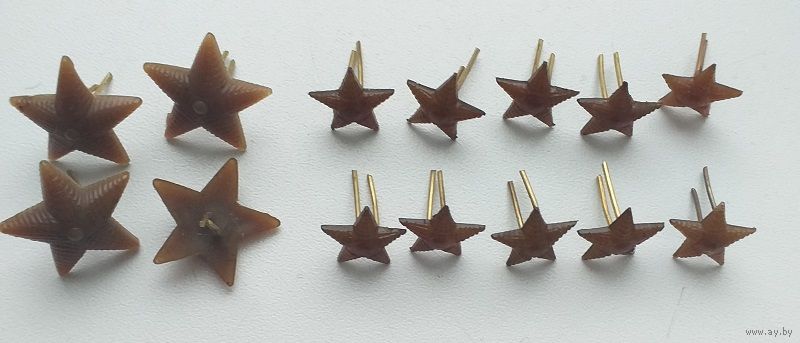 Эксперементальные звезды на погоны начала 1960 годов, пластмассовые с латунными усами, 4 на СОС и 10 на МОС