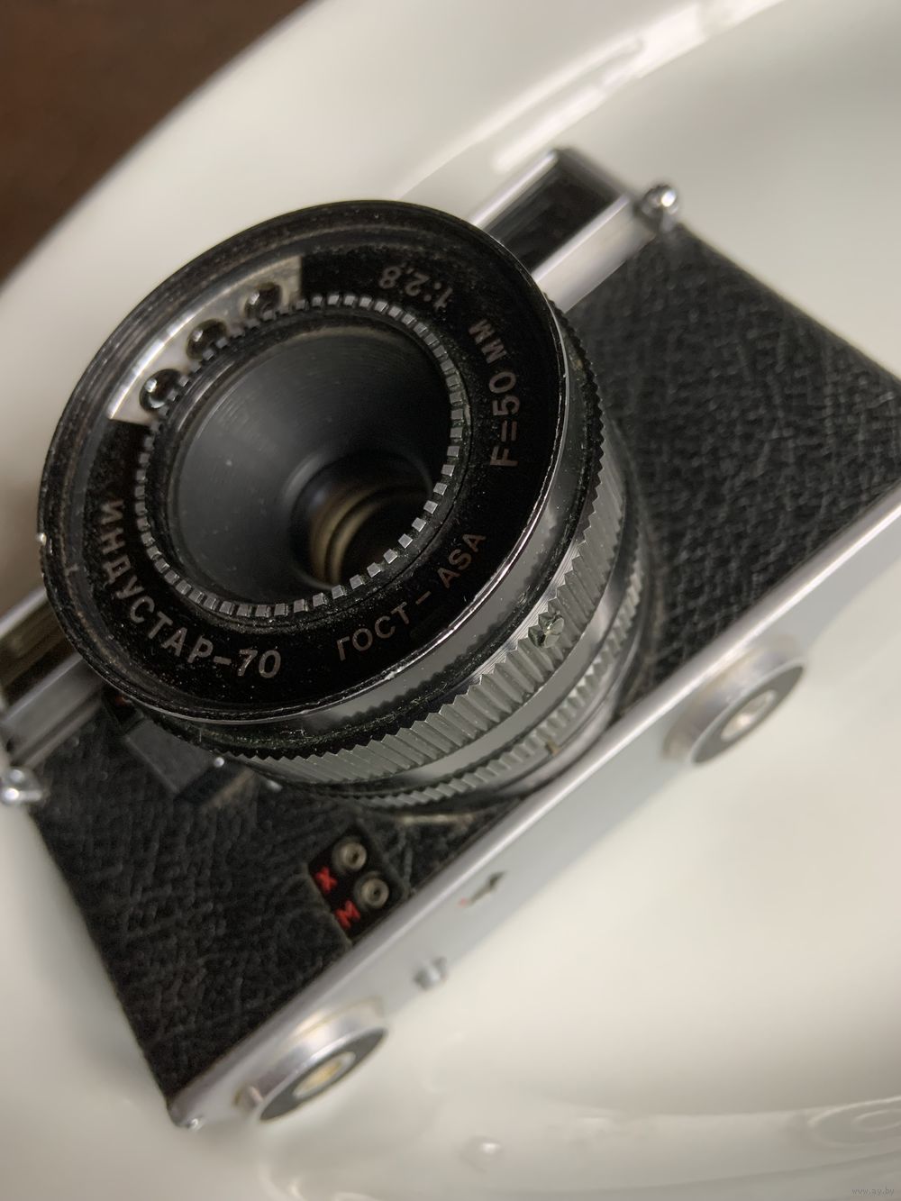 | По некоторым параметрам даже превосходил японский аналог за что был награждён Большой золотой медалью на Лейпцигской ярмарке! На несъёмном объективе "индустар-70" 2,8/50. | |