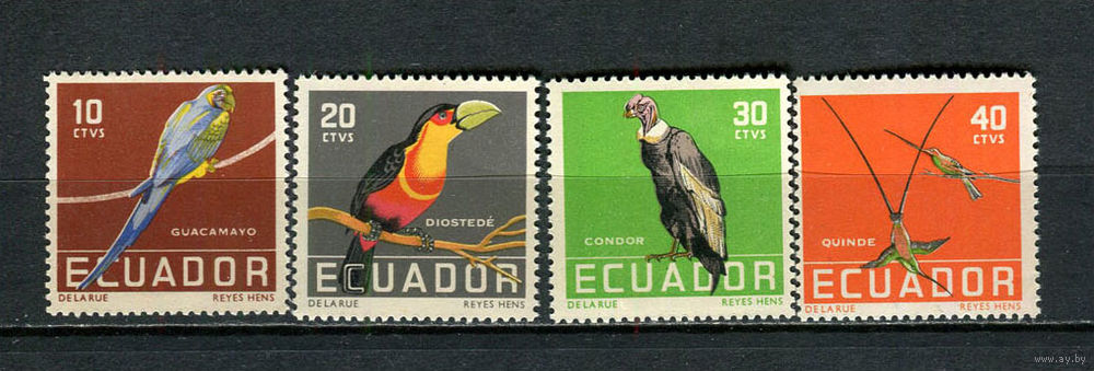 Эквадор - 1958 - Птицы - (незначительные пятна на клее у ном. 10) - [Mi. 956-959] - полная серия - 4 марки. MNH. (Лот 35HZ)-TG3P46