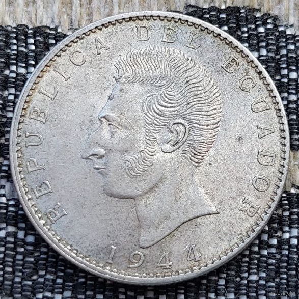 Эквадор 2 эскудо 1944 года. Герб. II Мировая война. Серебро! Сторгуй за свою цену, предложи обмен! Y